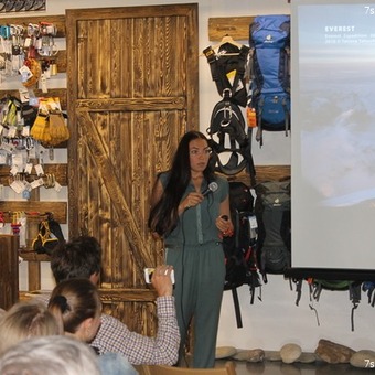 Public Speaking Ukrainian Summiter of Everest, expedition member of the 7 Summits Club, Tatiana Yalovchak visited Moscow. She paid tribute to the teachers in mountaineering Sergei Kovalev and Elena Kovaleva, who now live and work in the capital of Russia. Surprising it took place almost in the form of a dialogue with the audience, which is not often. We can call it a success and a credit to both sides. The audience was curious, and Tanya spoke easily, but at the same time emotionally and honestly.
