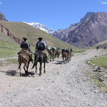 Hello, Seven Summits! Get information on Aconcagua. We are OK, we are working on a plan, getting acclimatization for the standard version. Yesterday we spent the night at the Plaza Canada, today we climbed to Nido de Condores. All members are in good conditions. What is proved by two facts. First, we were ahead of the porters. And second, now while the water is boiled, members read the literature. That is, everything is fine, everything is going according to the plan. So long! Sergei Larin.