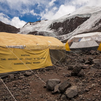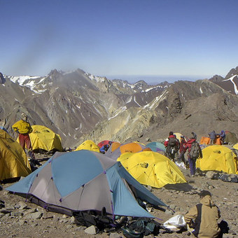 Hi everybody! It says Vladimir Kotlyar, a guide of an expedition on Aconcagua. We are now in the first camp, where we'll stay 2 days for acclimatization. Plaza Confluencia – on called this place. Now we sit, eat, gather strength. We ...