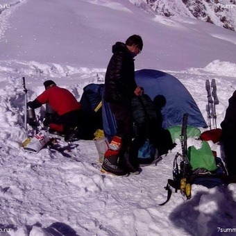09.27.16 - night was good - that is, sleep well, my head does not hurt. We go to camp 2 (6250). There is normally, but not fast. My friends have tents here. Fortunately they were not smashed by snowfall. We dig out and start to cook. We went early,  but fell asleep only to 23 00.