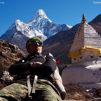 Vladimir Kotlyar, the guide of the 7 Summits Club: Early morning, the altitude of 5500 m.  Wind plays with colorful prayer flags, the sun begins to peek out shyly from behind Everest, painting in soft pink snow-capped mountain ranges and peaks. I'm sitting on top of Kala Patar in the nest of the check boxes and backpacks. Frosty morning air is pleasant tingling skin. How is it beautiful!