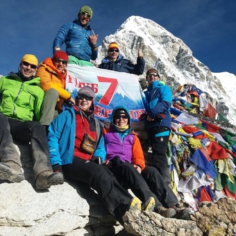 Vladimir Kotlyar, a guide of the 7 Summits Club: Good morning! This is a message from Kotlyar and his team of “sportsmen self-racers”. At 8 am we all together climbed to the top of Kalapatar! Hurrah!!! We are already moving ...