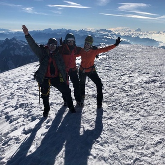 Summit! Two of our climbers and a guide of the 7 Summits Club climbed to the top of Mont Blanc