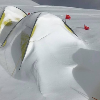 On the eve the group completed acclimatization rotation, spending a night in camp 3 at an altitude of 6100. 10 group members and two guides are now ready to storm the summit.