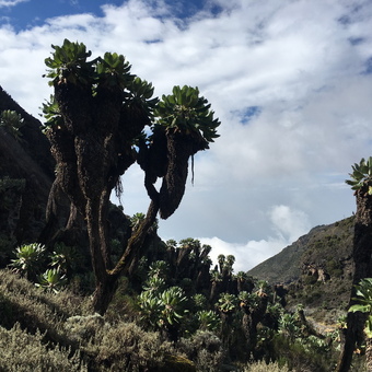 Kilimanjaro-2, day 3, July 30. Transfer from Shira camp to Baranko camp 3900m via Lava tower 4600m. We left at 8:20. Weather's bad. Strong wind, clouds. A week ago at 4000m we went in thermal underwear, now it was not hot in down jackets. The Lava tower had a nice lunch in the tent. We came to Baranko at 17:00. 4,600.