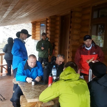 Hello! Here is a guide of the 7 Summits Club Andrey Berezin. Today our group moved from Terskol to a Refuge at 3900 m. We successfully conducted snow training sessions. Now we are preparing for a well-deserved dinner. Alexander ...