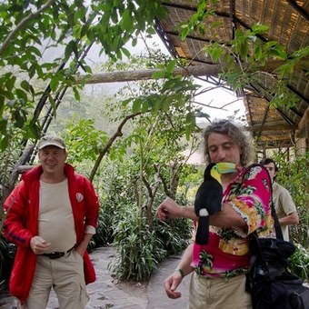 About four hours later we were on the barely visible path, climbing over fallen tree trunks and forced his way through the bushes. Sometimes porters had to work a machete. One of the locals are periodically read to us a short lecture on the local flora (fauna there is miserable).