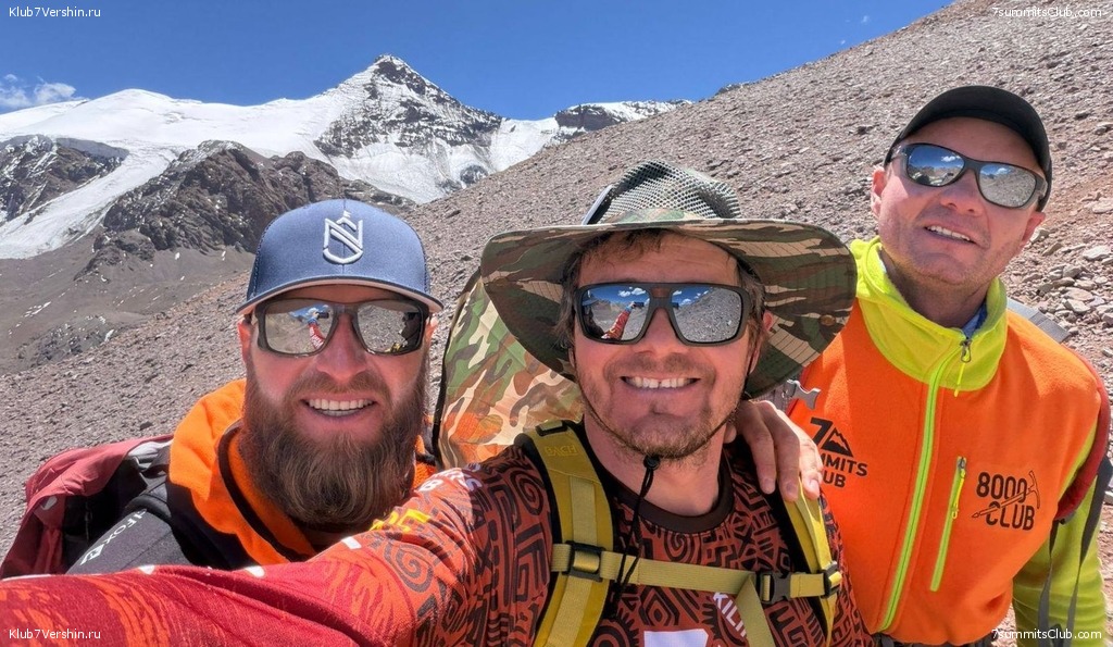 Greetings from the slopes of Aconcagua! Today, our "Malbec" group ascended to the Nido de Condores camp (5,500 m). The weather was fine during the ascent, and we climbed quite quickly. At the camp, as always, thanks to Valera Myasoedov's care, we had boiling water, so essential at altitude, hot tea, and cookies waiting for us. These are the things that quickly restore our strength. Also during the ascent, we had an interesting encounter with the famous Nepalese climber Nims. We took a photo with him. The group's guides were Georgy Bushuev and Dmitry Semenov.