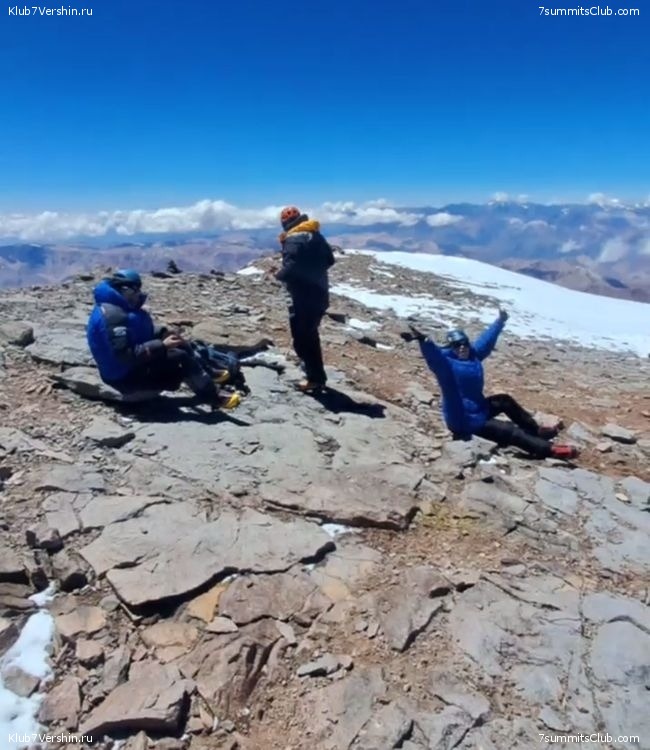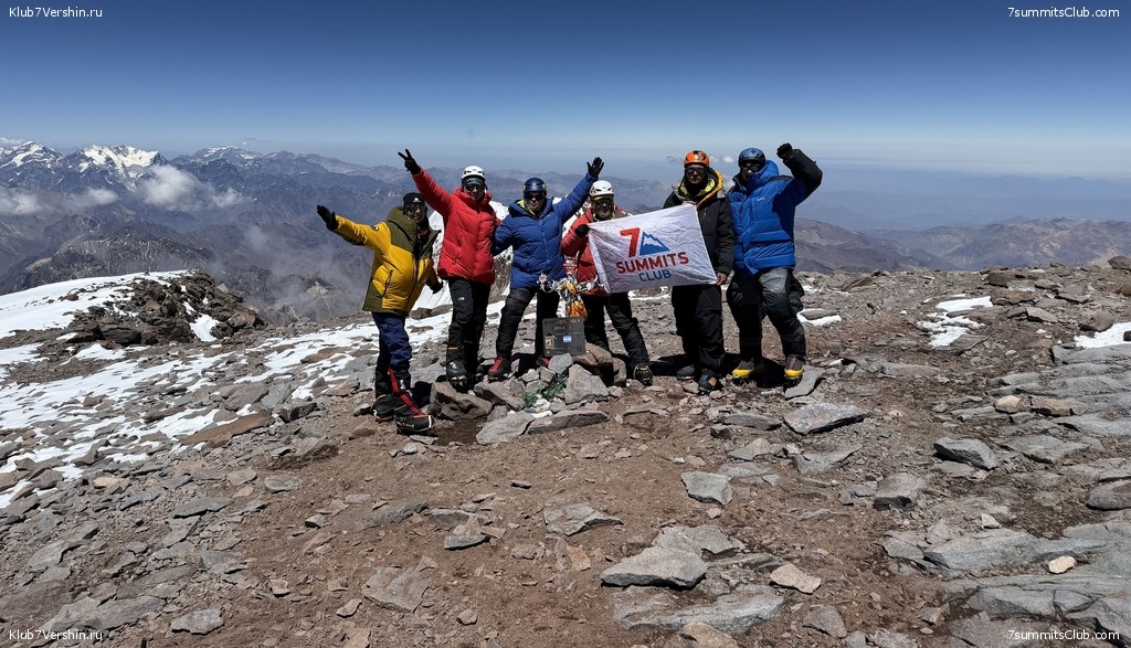 The summit! The 7 Summits Club "Ponaehali" group has climbed to the summit of the six-thousander San Francisco