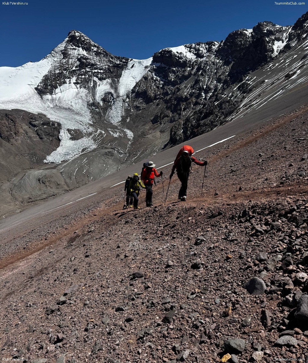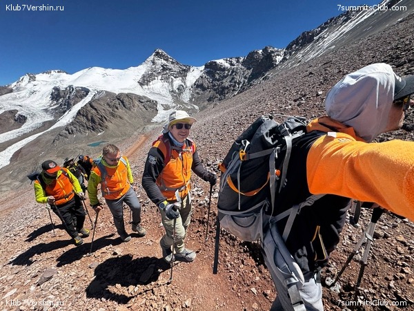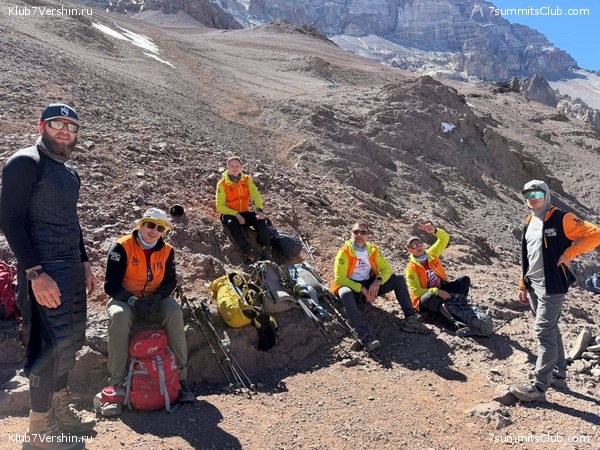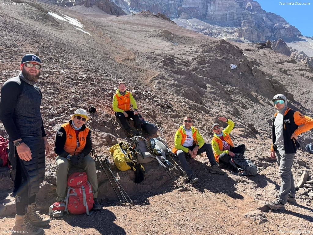 Greetings from the slopes of Aconcagua from the "Five Spartans" group! Today was a relatively easy day. We had breakfast and set out to acclimatize to the Plaza Canada camp. It was a great two and a half hour hike. We spent a bit of time at 5,000 meters and then descended. Then we rested. Tomorrow is a rest day. We plan to have a medical check and create activities at camp. With you were 7 Summits Club guides Sergey Avtomonov and Leuan Atabiev.