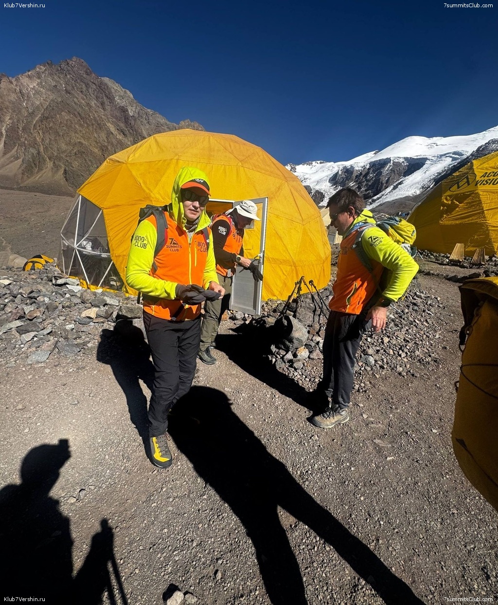 Greetings from the "Malbec" group on the slopes of Aconcagua! Today we spent a rest day at our base camp, preparing for tomorrow's climb to Nido de Condores. We've completed our altitude acclimatization cycle, and now it's all uphill to the summit. As always, it's a bit nerve-wracking; every climb is unique. This season is full of weather surprises; today the wind blew all night, gusting up to 55 km/h. We passed this test, too; experience camping overnight in stormy weather will be useful. Our friendly team is ready for the climb; follow us and wish us luck! Group guides: Georgy Bushuev and Dmitry Semenov.