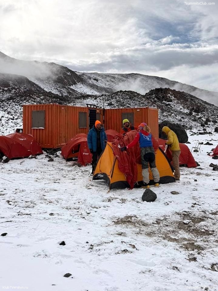 The 7 Summits Club "Ponaehali" group has moved to the expedition's main base camp at the Laguna Verde hut