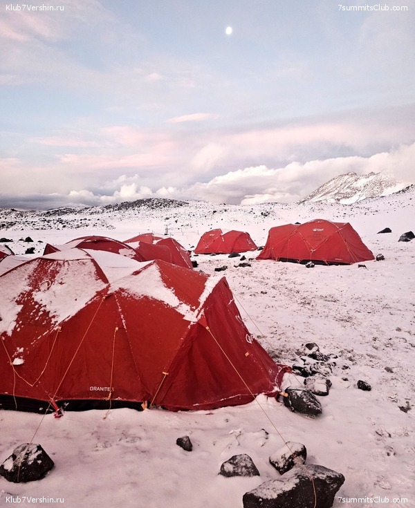 Greetings from the slopes of Aconcagua, or more specifically, from the Berlin summit camp (5930 m) from the "Malbecs" group! Today we reached the assault camp. We rested a bit after the hike and dined on buckwheat and stewed meat. Now it's time for an early night and we'll be heading out tonight for the summit push. Wish us luck! Group guides: Dmitry Semenov, Georgy Bushuev, and Valery Myasoedov.