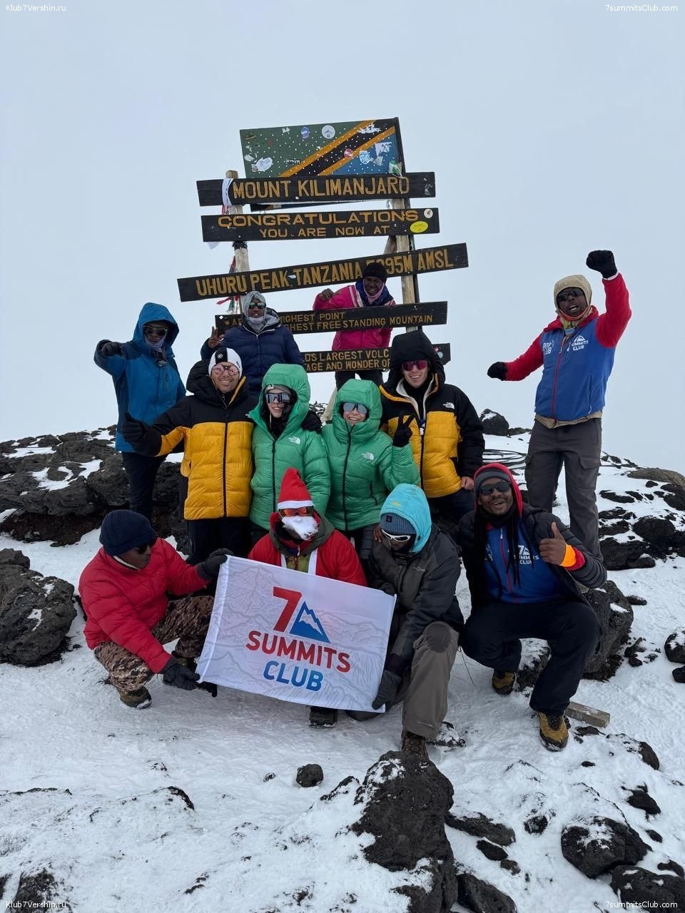 The 7 Summits Club "Super Family" sends greetings and New Year's wishes from the summit of Kilimanjaro!