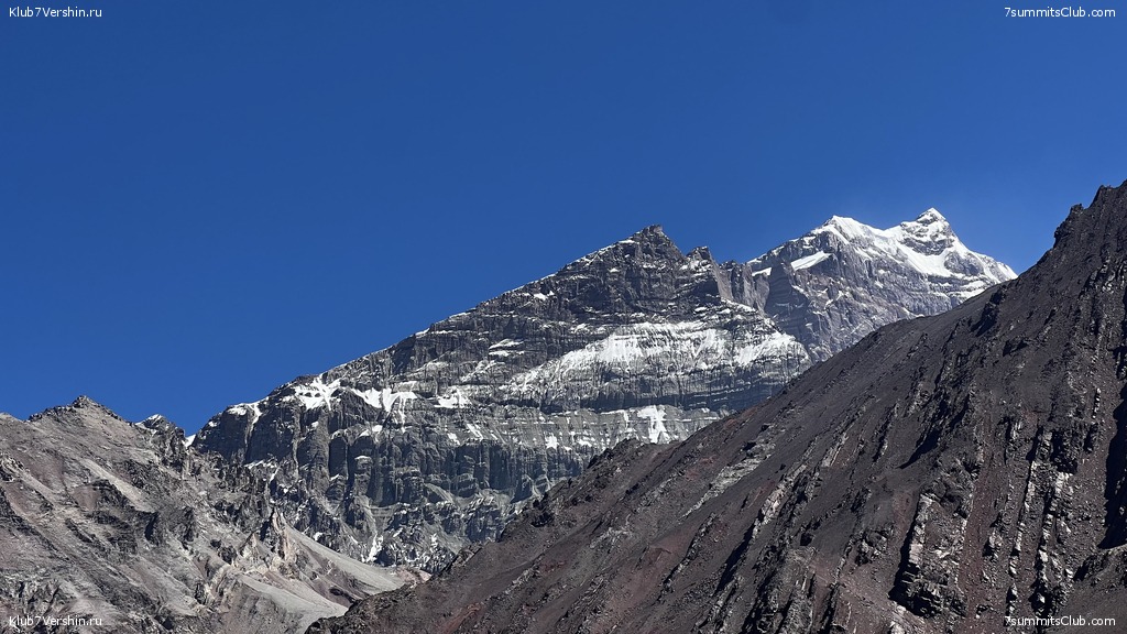 Greetings from the slopes of Aconcagua! Today, our "Malbec" group ascended to the Nido de Condores camp (5,500 m). The weather was fine during the ascent, and we climbed quite quickly. At the camp, as always, thanks to Valera Myasoedov's care, we had boiling water, so essential at altitude, hot tea, and cookies waiting for us. These are the things that quickly restore our strength. Also during the ascent, we had an interesting encounter with the famous Nepalese climber Nims. We took a photo with him. The group's guides were Georgy Bushuev and Dmitry Semenov.