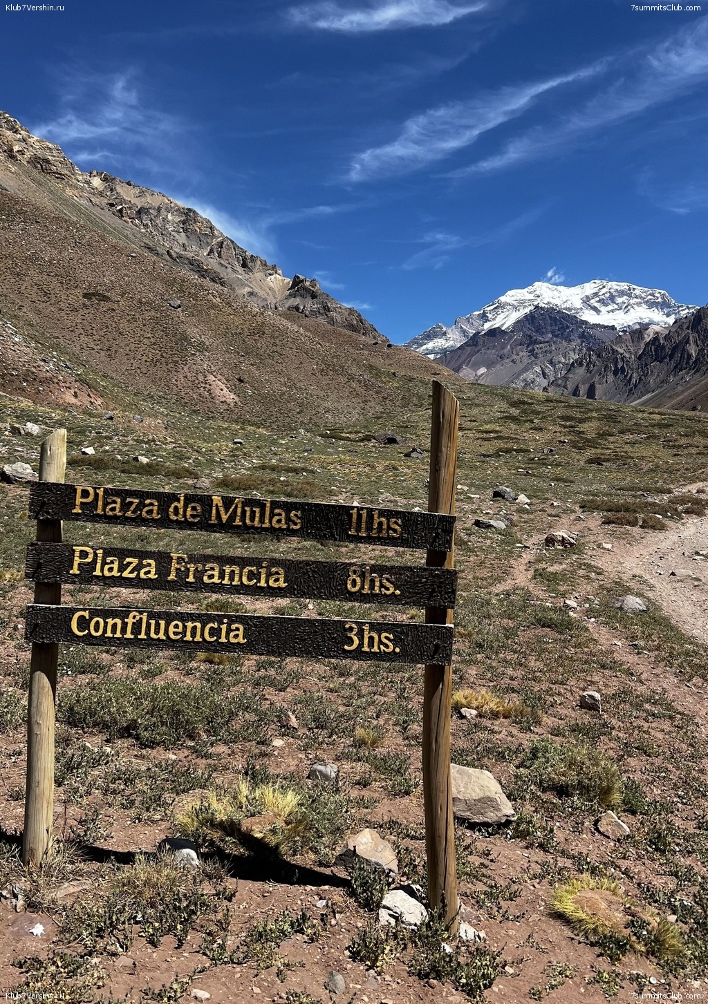 Greetings from sunny Argentina! Today, our super group trekked from the entrance to Aconcagua National Park, where we checked our permits, to Confluencia Camp (3,300m). We completed this stage at a good pace in 2 hours 40 minutes, and the group is in excellent condition. Group guides were Dmitry Semenov and Georgy Bushuev.