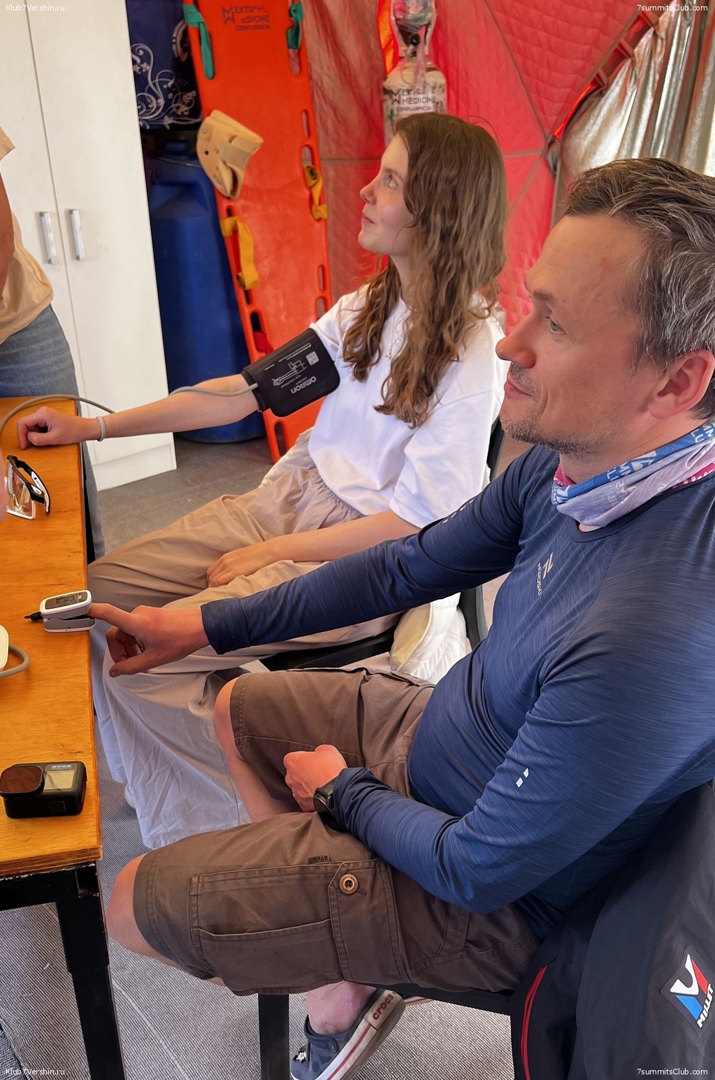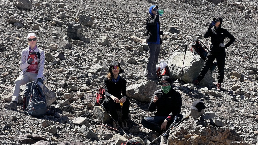 Greetings from sunny Argentina! Today, our super group completed an acclimatization rotation from Camp Confluencia toward the South Face of Aconcagua. We climbed in direction of Plaza Francia, reaching 4,000 meters. The weather and the group's condition are excellent, as confirmed by a medical check. Tomorrow we'll be heading to our base camp, Plaza de Mulas (4,300 meters). The guides Dmitry Semenov and Georgy Bushuev.