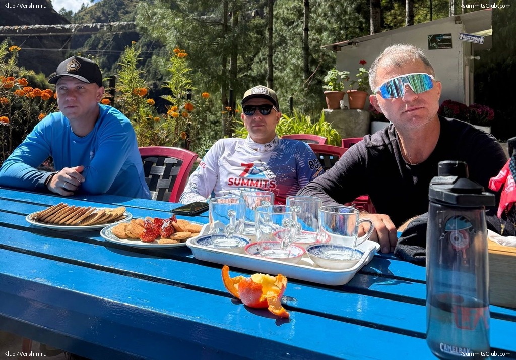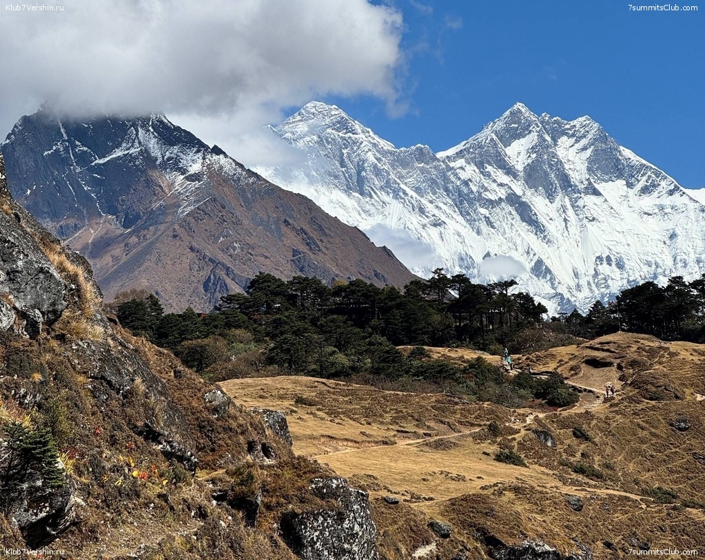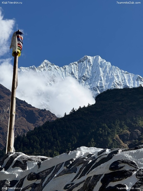 Namaste from the Himalayan Leopards group! Today we spent the day in Namche Bazaar. We slept in the morning, then went to the Everest View Hotel. The weather was kind, and we were able to see all the beauty of the Himalayas – all the main peaks, including Everest, were revealed to us. We drank tea at the hotel and descended. In the comfortable lodge, we showered, had a massage, and rested. Today is our last day, when the weather is really warm. We then leave the forest zone completely and walk through Tingboche Monastery to our favorite lodge. With you was Sergey Avtomonov, the 7 Summits Club guide.