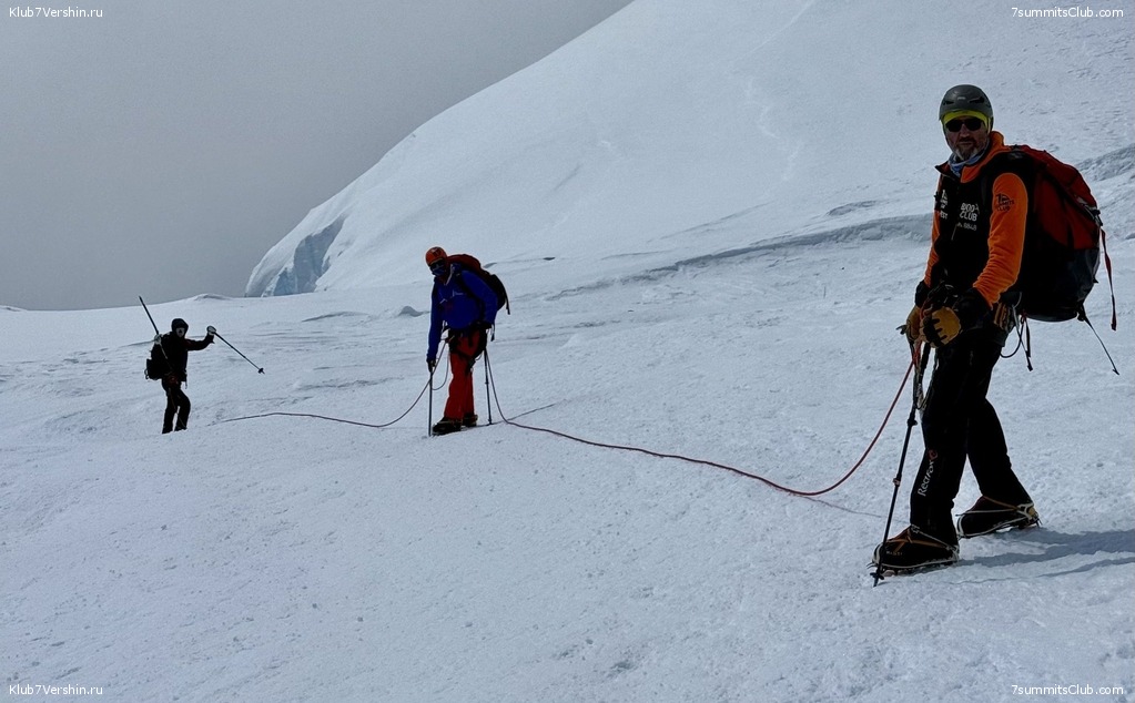 Greetings from the slope of Elbrus! Today, June 28, on a beautiful morning, at 6:00, the 7 Summits Club "Atomists" team in full force climbed the Western summit of Elbrus. We began the ascent from a height of 5000 meters at 2:30. The team showed an excellent result and willpower. The weather was favorable for our ascent, it was clear and cold.