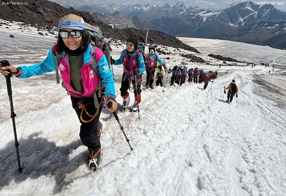 The new 7 Summits Club group began acclimatization before climbing Elbrus with Lyuda Korobeshko as a guide