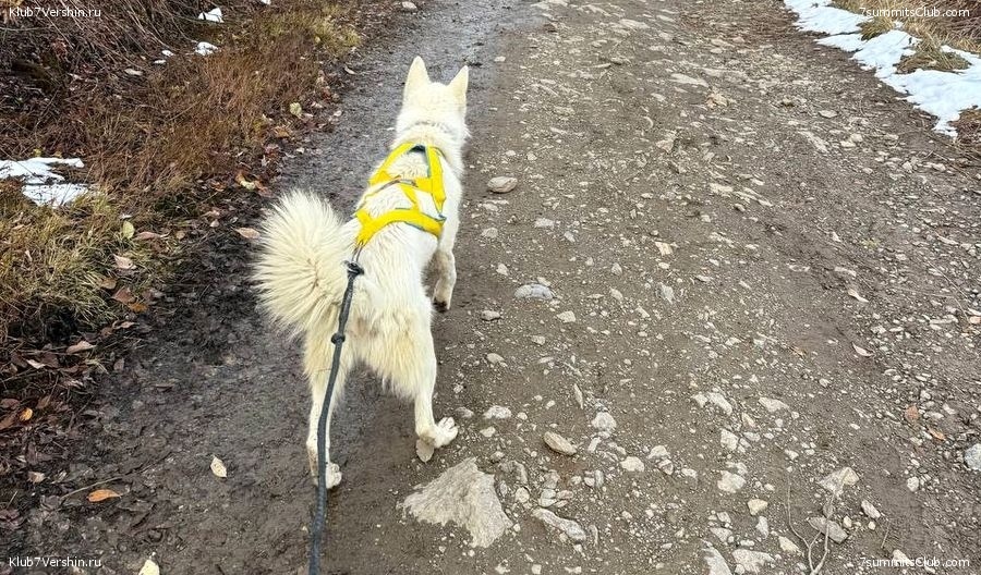 Today, October 14th, we made our first acclimatization ascent with dogs to the slopes of Mount Cheget. The result exceeded all expectations. All four dogs moved briskly upwards and pulled reliably. The ascent speed doubled. We reached the Ai Café in an hour and a half. The dogs are all renowned. They've been on the North Pole, but this is their first time in the mountains. Well done!