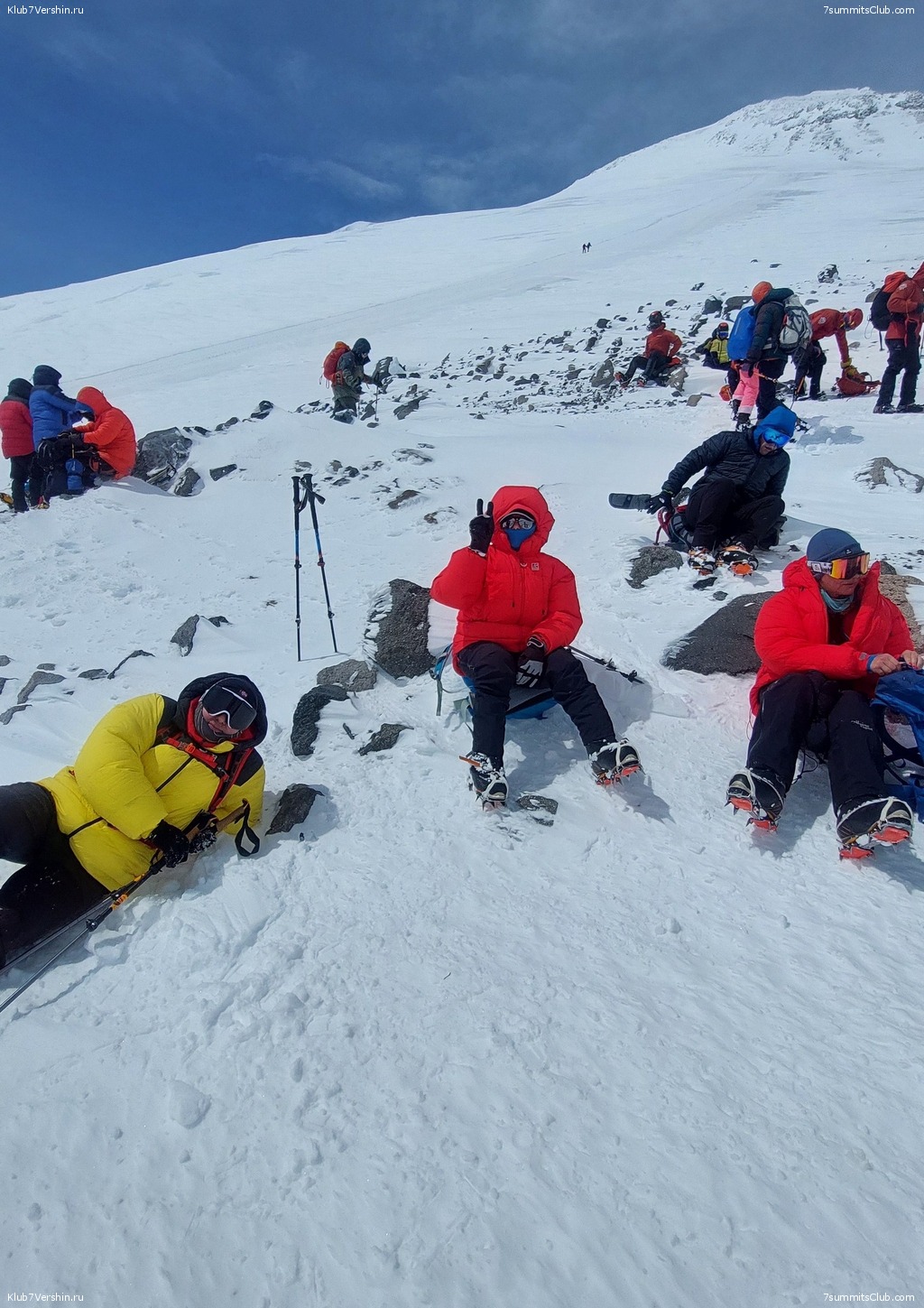 Good day to all! Everything is calm on Elbrus. The 7 Summits Club group "Vysotniki" moved in a Ural Truck (the cable cars are not working) to the refuge. Then we went on the final acclimatization ascent and reached the top of Pastukhov Rocks in 3:50. We returned to the area of the Refuge of Eleven and conducted training snow and ice exercises. We worked with an ice axe, there is a lot of fresh wet snow, you can't get going on your butt. So we didn't manage to work everything out. But the group is strong, no problem. At 18:30 we returned to the hotel. All the participants are cheerful and happy. We are resting before storming the summit. Guide “Hedgehog”.
