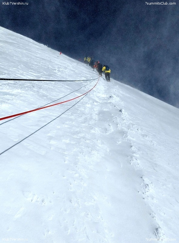 The "Very organized group" of the 7 Summits Club interrupted the acclimatization climb in an organized manner to practice a quick descent in a thunderstorm