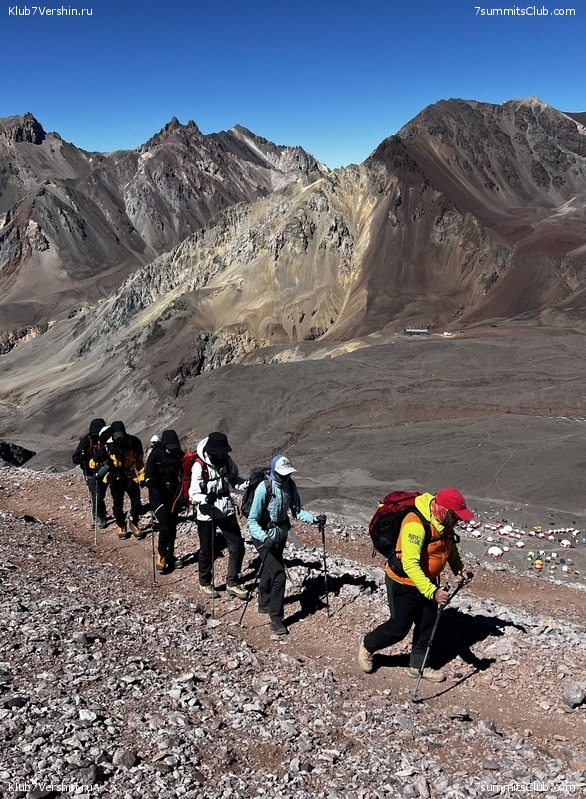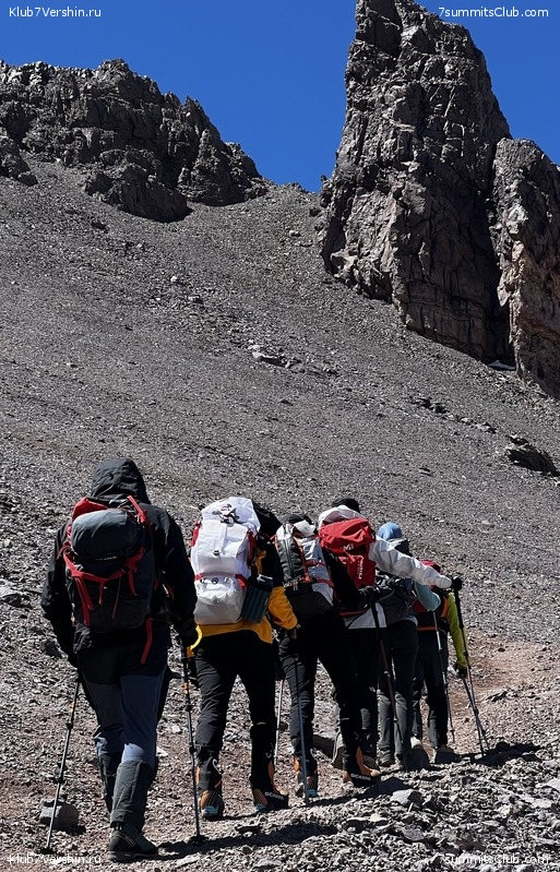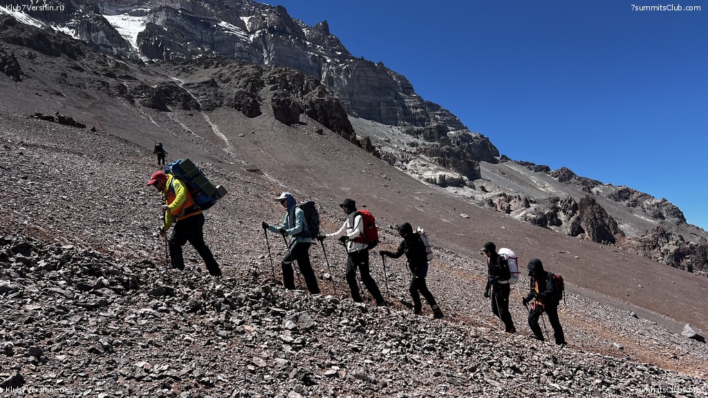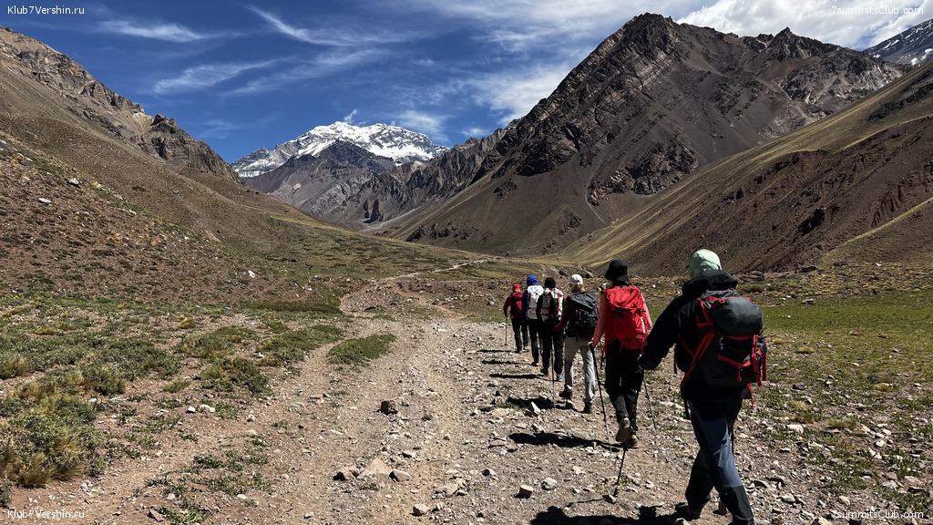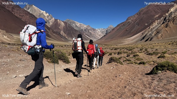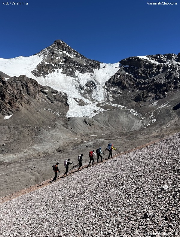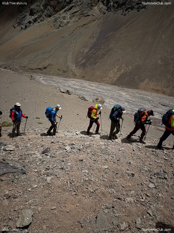 Greetings from the slopes of Aconcagua! Today, our super group ascended to our comfortable base camp at Plaza de Mulas (4,300m). We covered our route at a good pace at 7 hours and 30 minutes, which speaks about our member's good physical fitness. Tomorrow is a rest day, after which we will begin our altitude acclimatization. Group guides are Dmitry Semenov and Georgy Bushuev.