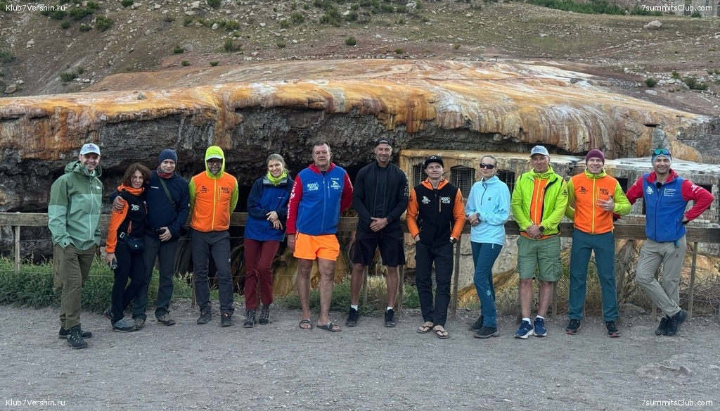 Greetings from sunny Argentina! Today, our super group left the hospitable city of Mendoza, and three hours later, we arrived at the entrance to Aconcagua National Park. We'll spend the night here and begin our trek to the summit tomorrow. Today, we also visited the Inca Bridge, a natural landmark. Guides for the group are Georgy Bushuev and Dmitry Semenov.
