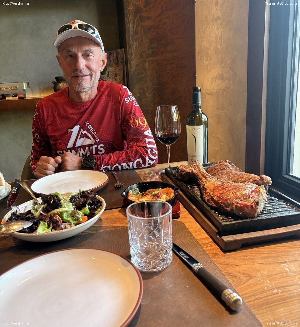 Greetings from Mendoza! The "Otkryvashka" group successfully completed their mission and opened the mountain for the next groups this season. The well-deserved award ceremony, accompanied by delicious wine and a Tomahawk steak, took place at our favorite restaurant, La Lucia. Believe me, the contrast between the thrill of pushing yourself to the limit on the mountain and the steak in Mendoza is what we go to Aconcagua for.