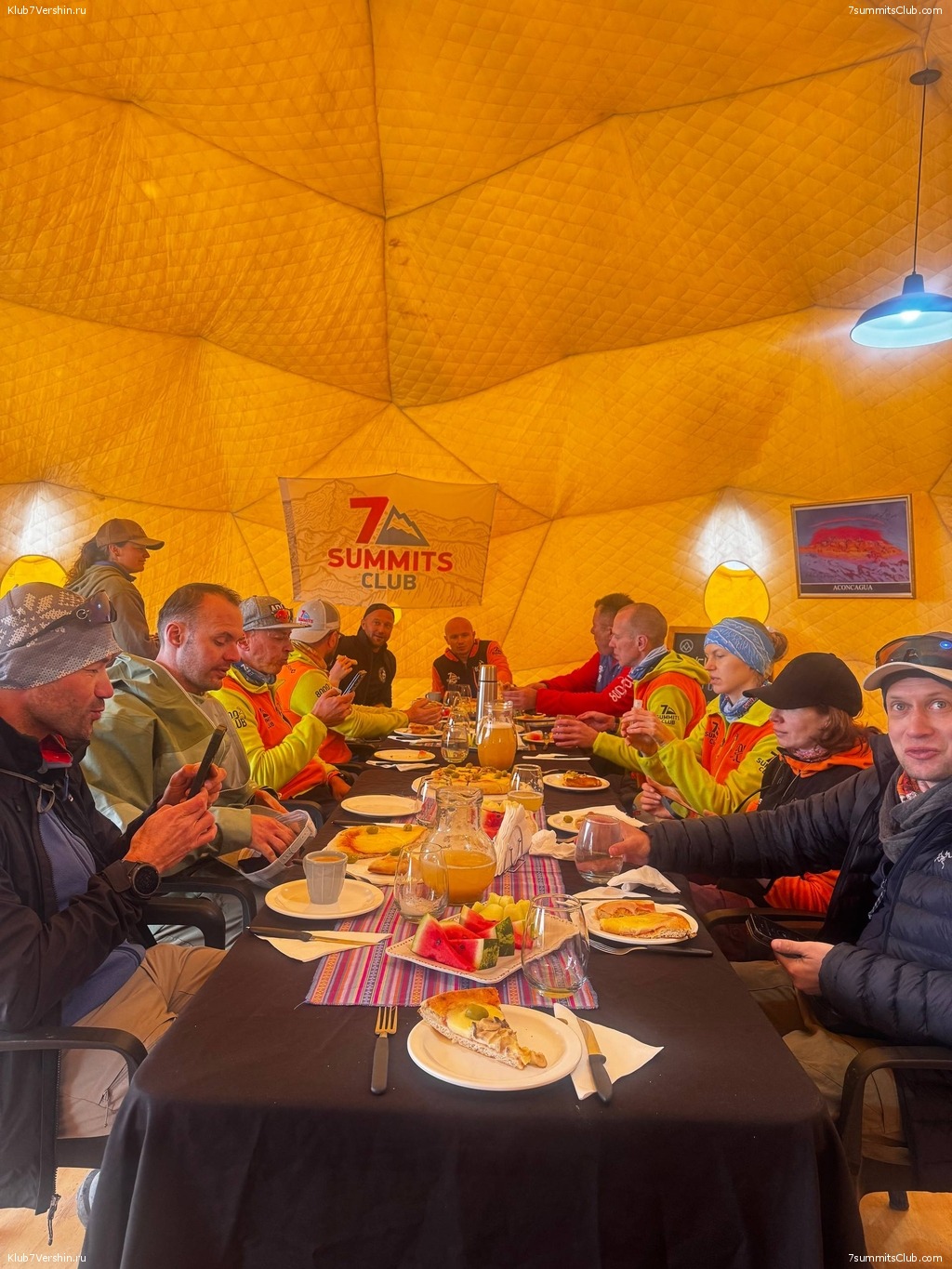 Greetings from Argentina! The "Otkryvashka" group continues its active acclimatization on the slopes of Aconcagua. I'm writing to you from Camp Nido de Condores, located at 5,500 meters. How can I write to you from 5,500 meters? It's simple! We have Starlink here, just like we do at Camp Berlin at 5,950 meters. Without exaggeration, both the Base Camp and the high camps offer the absolute best services on the mountain. Separate large domo tents serve as dining rooms and mess halls at each camp, where you can rest and prepare for the big day. And registration for the January groups is still open. If anyone's still considering it, don't hesitate!
