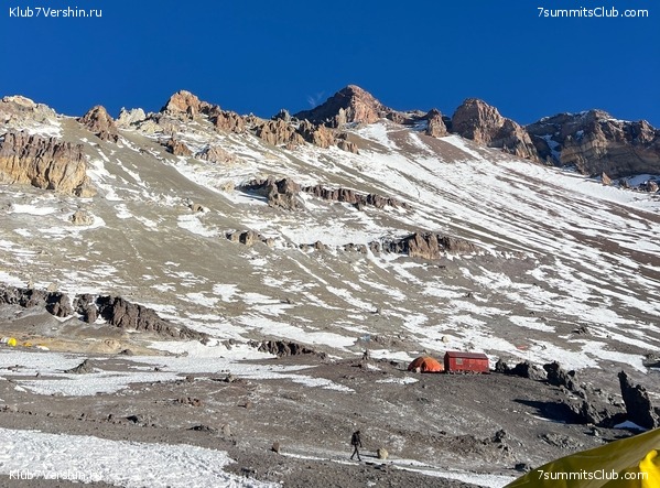 Greetings from the slopes of Aconcagua! Today was an easy day for us. We spent the night at Camp Nido de Condores, at an altitude of 5,500 meters. The night was windless and not too cold, although the water in the kettle froze. We had breakfast and began our descent to our base camp, where lunch and a hot shower awaited us. This concluded our high-altitude acclimatization cycle. Now we're resting and preparing to ascend to the high camps for our subsequent assault on Aconcagua. Our group guides are Dmitry Semenov and Georgy Bushuev.