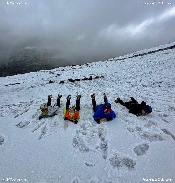 December 6th. Greetings from Ecuador from the "Near zero" group! Today we climbed the first volcano on our program, Guagua Pichincha, at 4,800 meters. On the way up, we encountered Andean wolves (a mountain fox) and caracara birds. We climbed through snow, which is rare here, and barely found the summit in the fog. On the descent, we drank tea made from local Ecuadorian coca (sunfo) at the hut – it immediately invigorated us.