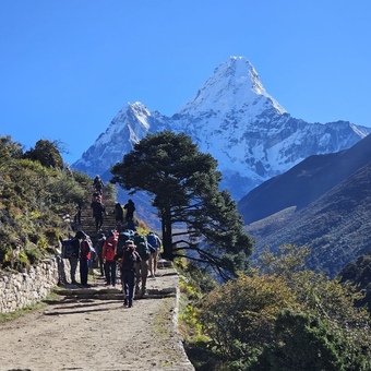 The trek offers breathtaking views of some of the world's highest peaks, including Mount Everest, Lhotse, Nuptse, and Ama Dablam. The diverse landscapes, from lush forests to barren alpine terrains, make the scenery spectacular and varied. -