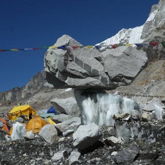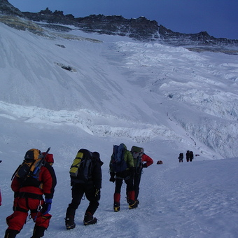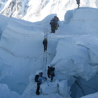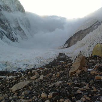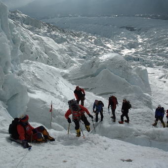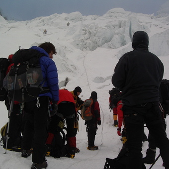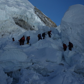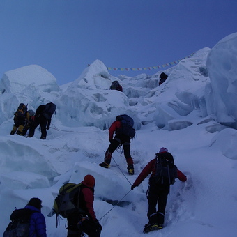 Two days later we start our journey to Everest: we fly from Katmandu to Lukla and than we have about a week for trekking to Everest BC. In 6 days we get to the Everest BC (5350m). By this time yaks and porters bring our stuff, Sherpas are establishing BC. After 2-3 days rest in BC our Sherpas carry equipment to camps 6100m and 6400m. One day later after camps are ready, the expedition members start their first acclimatization.