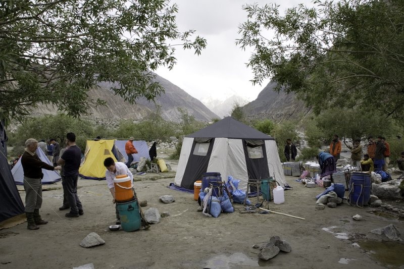We found ourselves in the camp at noon - the heat is terrible. So we hide in tents until the evening. And the bravest swim in the mountain river Braldu, near which our camp is located.