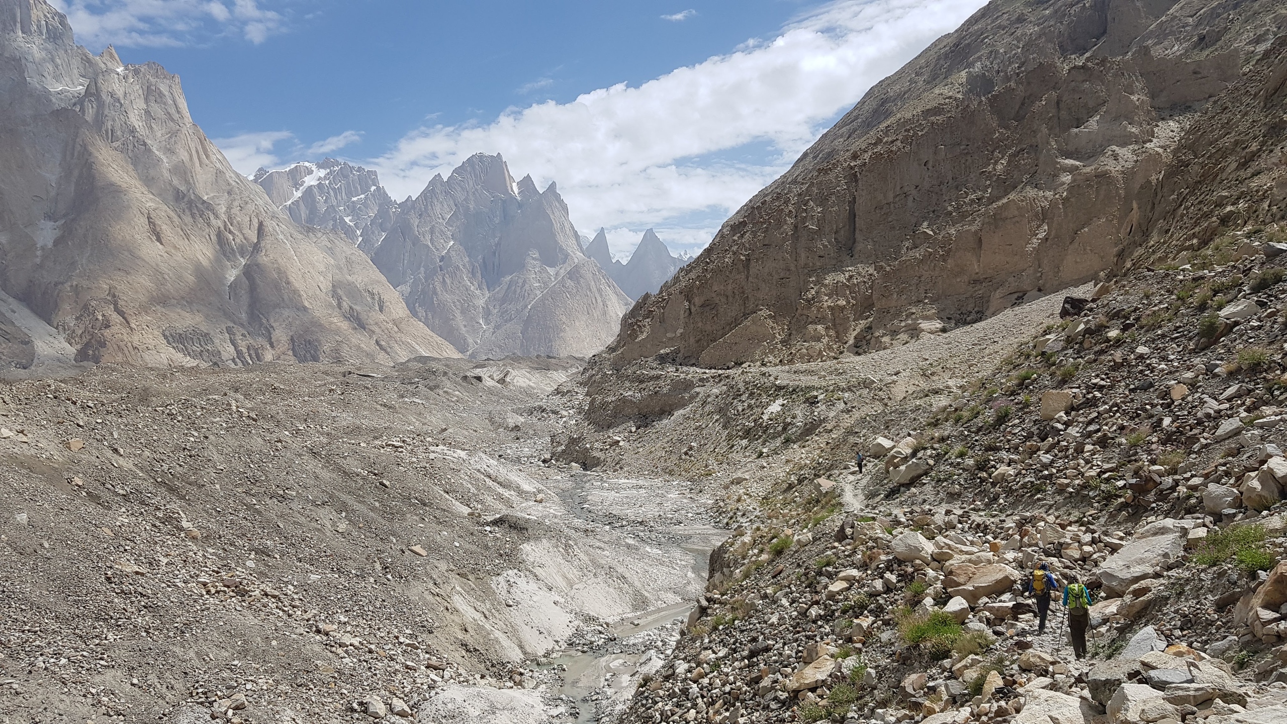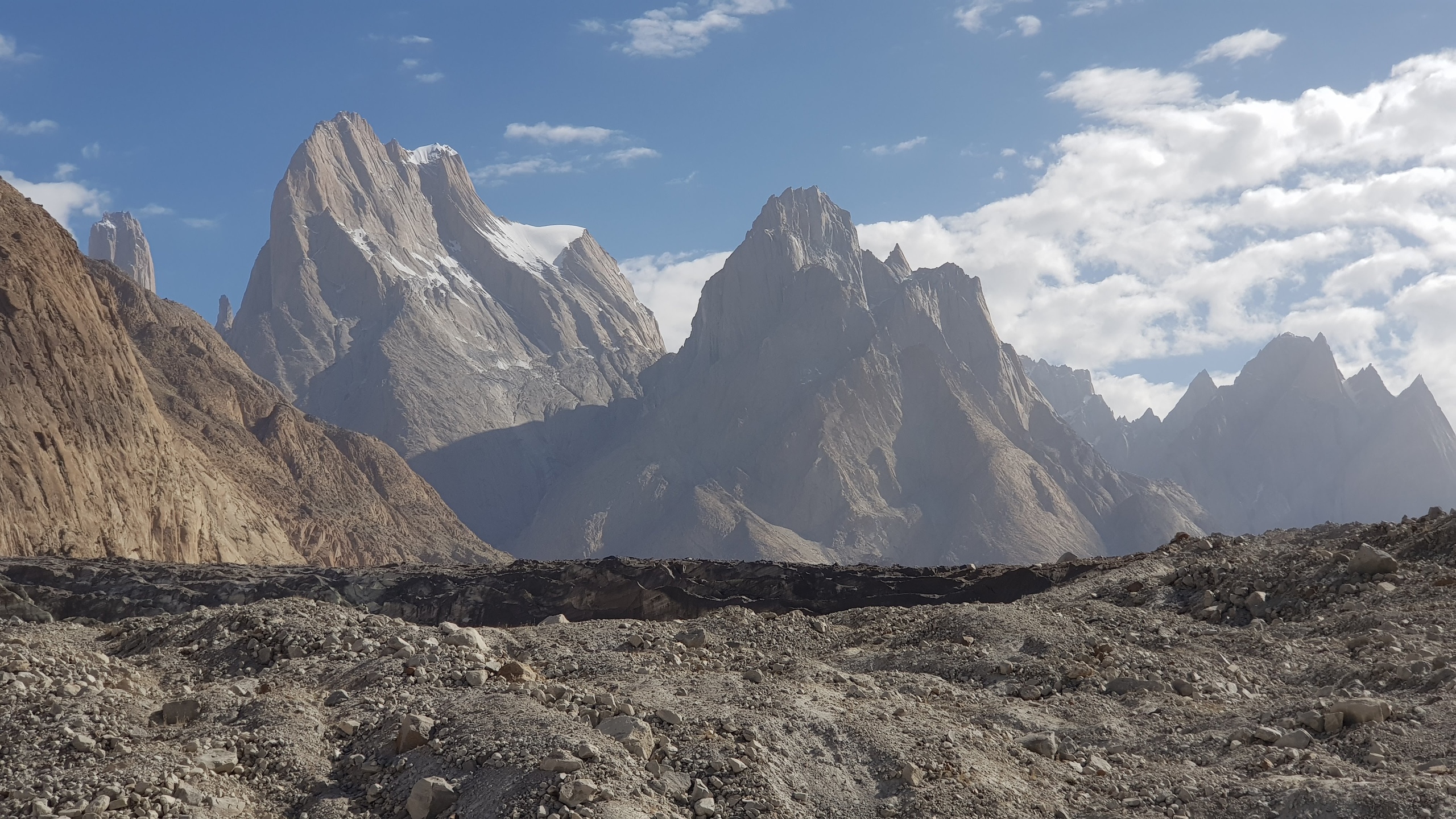 All salaam from Pakistan from the participants of the expedition to K2 "High Altitude Gene 2" or briefly GenKa2! Wow, what a day we had today - tin!!!  We got up before 4 am. We had breakfast at 4.30 and left at 5. An hour later we reached the famous Baltoro glacier and started moving along it. From the good - these are stunning views, especially of the Trango Towers. And again Broad Peak flashed in the distance. From not very good - we walked almost 10 hours to the Urdukas camp. It's hot again, but the clouds have already started to come and even a little rain has fallen.