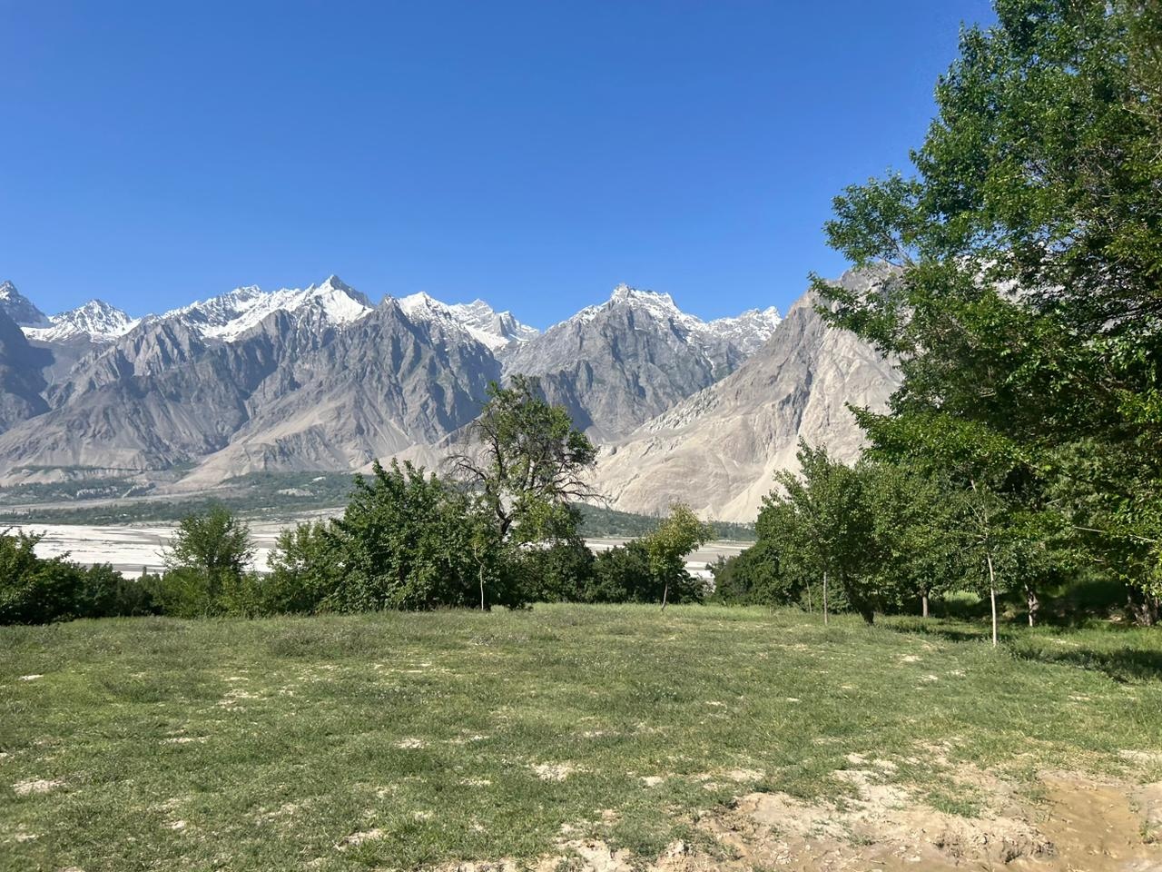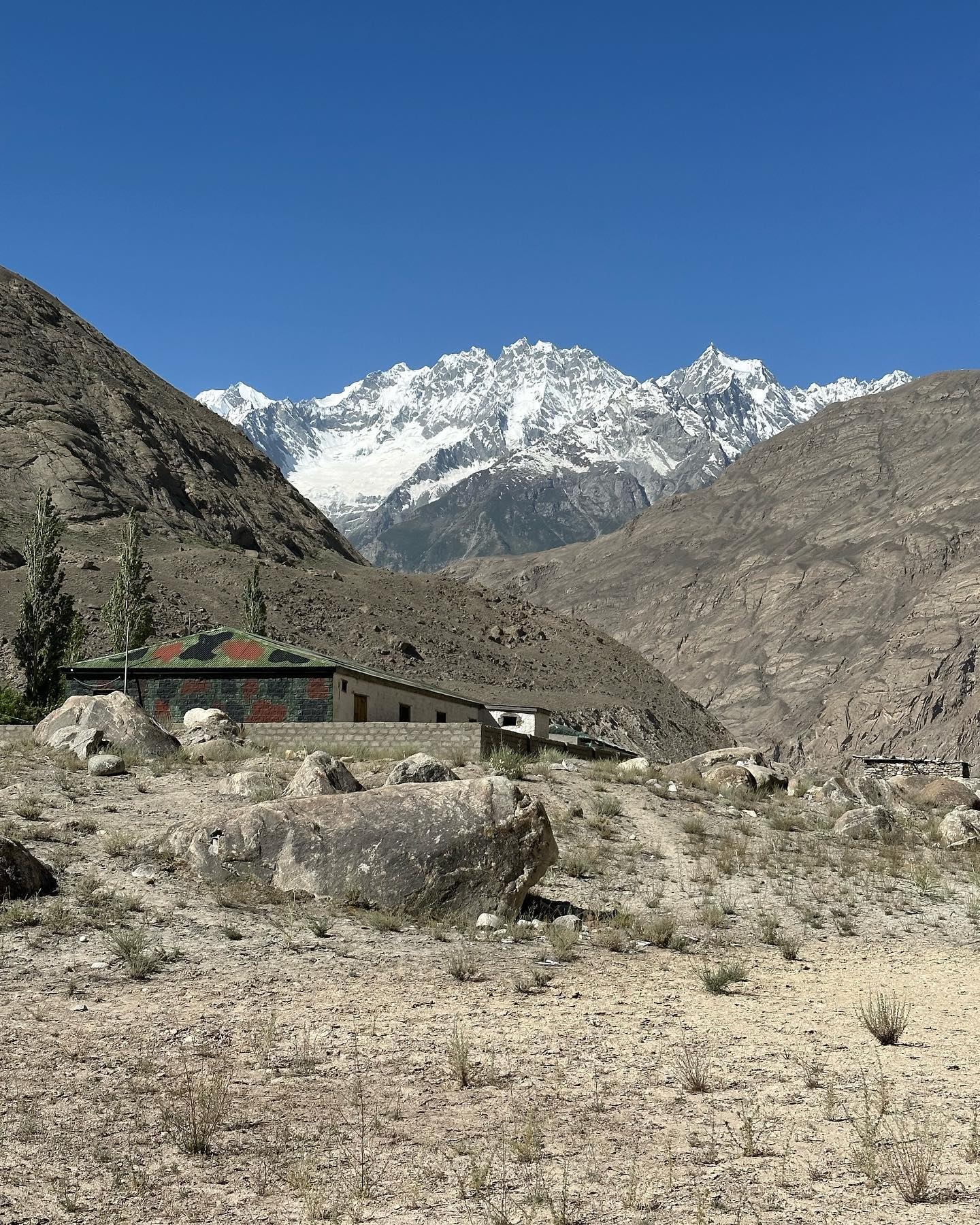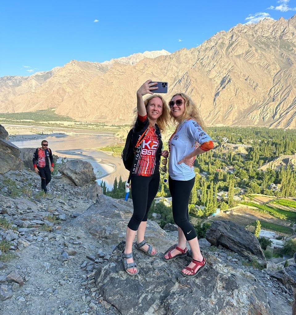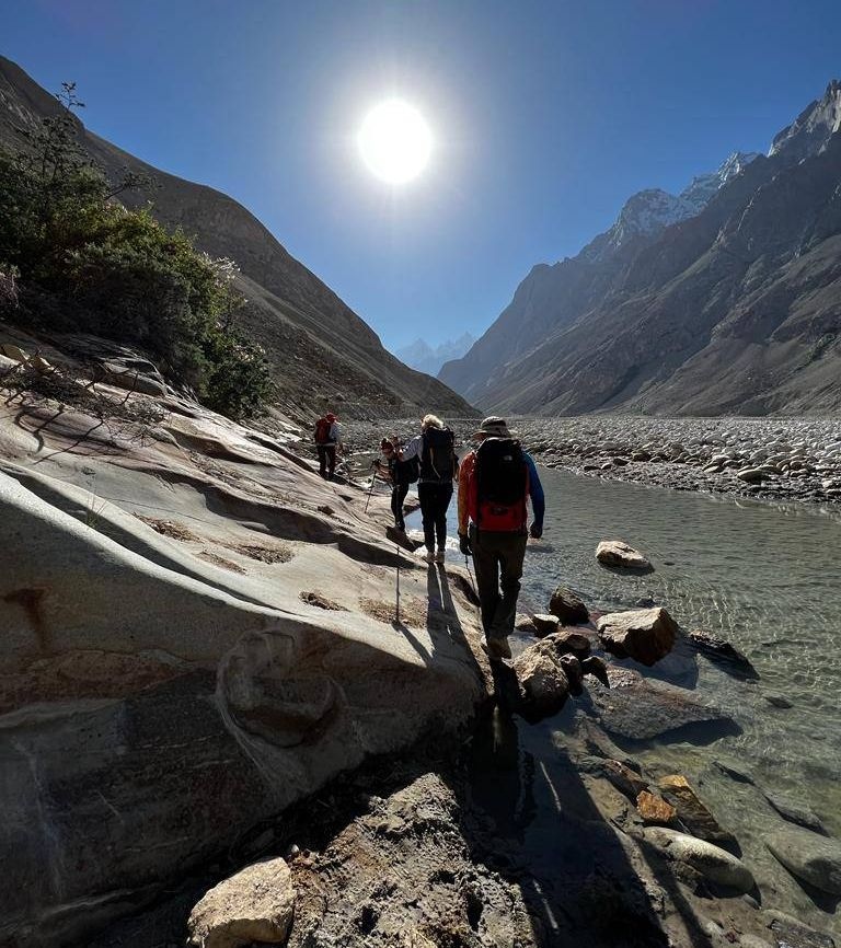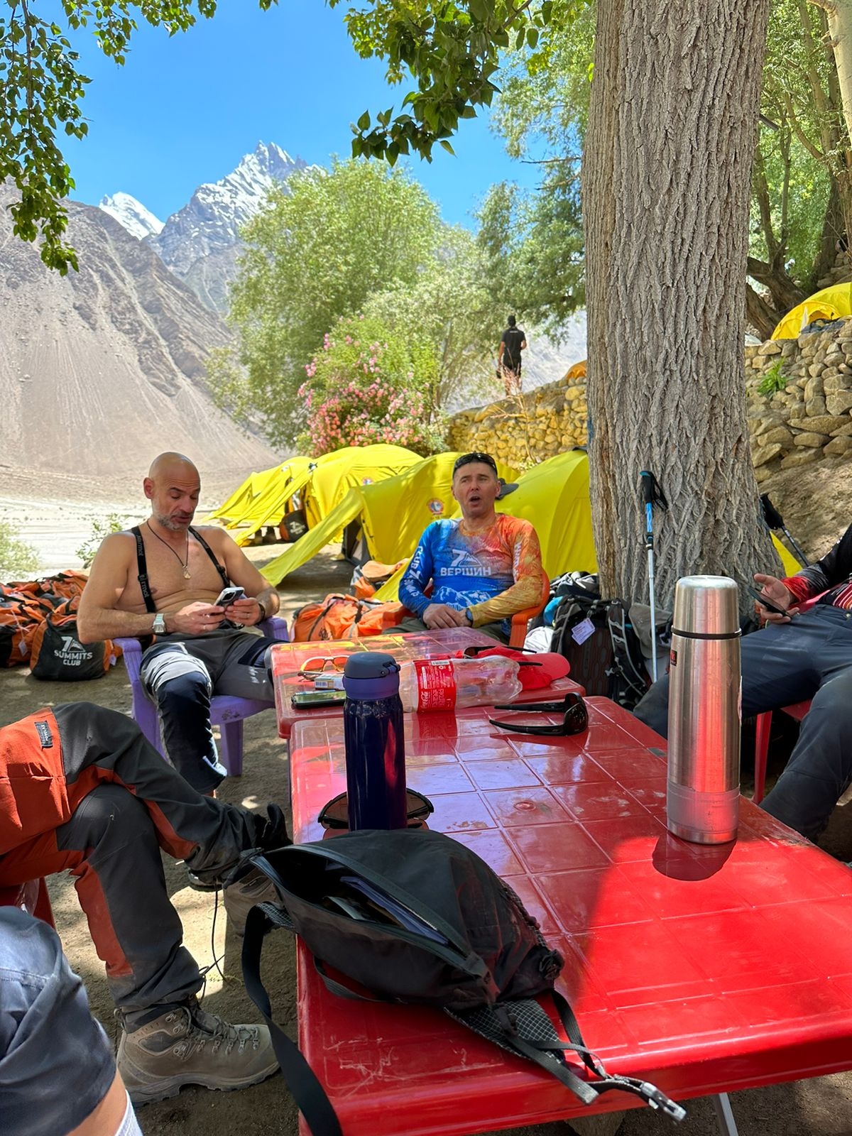 June 25. All salaam from Pakistan from the participants of the expedition on K2 "High-Altitude Gene 2" or briefly GenKa2! Today we got up with the roosters again - at 4.30. We had breakfast at 5 in the morning. And we decided to "cheat" a little - we drove up 5 km by car. The remaining 15 honestly walked. Again in the heat, but the places are beautiful - along the river along the sand at first, then along the rocky paths. We saw Broad Peak and K2 in the distance. By lunchtime we reached the Paiju camp at 3400 in a small green grove - hooray - shade!!   Tomorrow will be the longest part of our trekking.