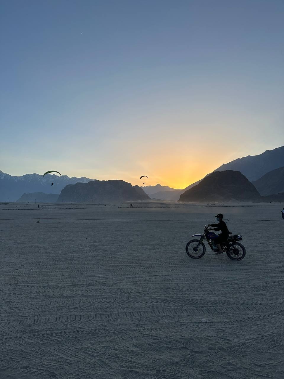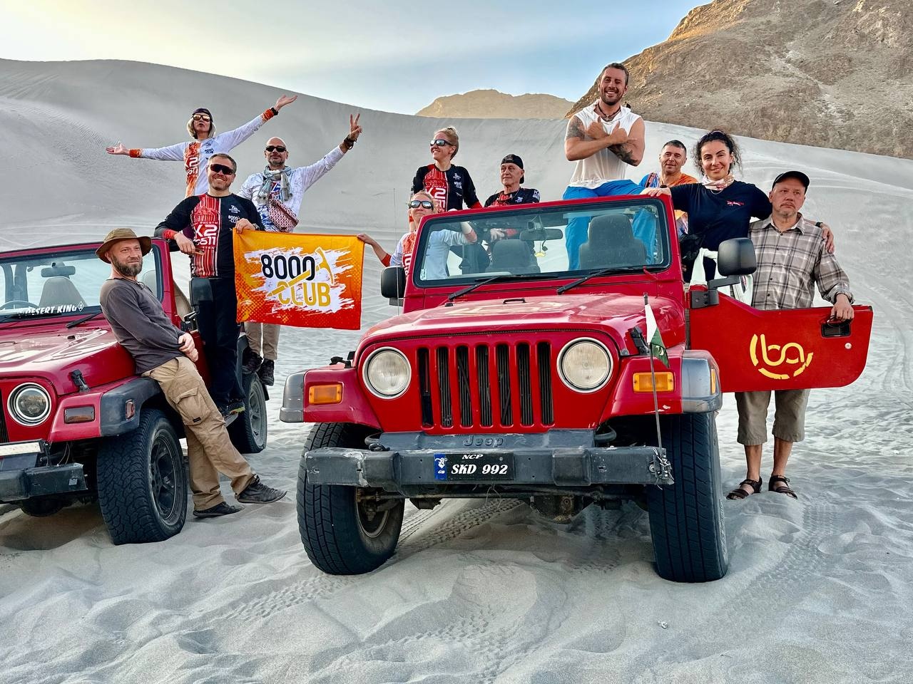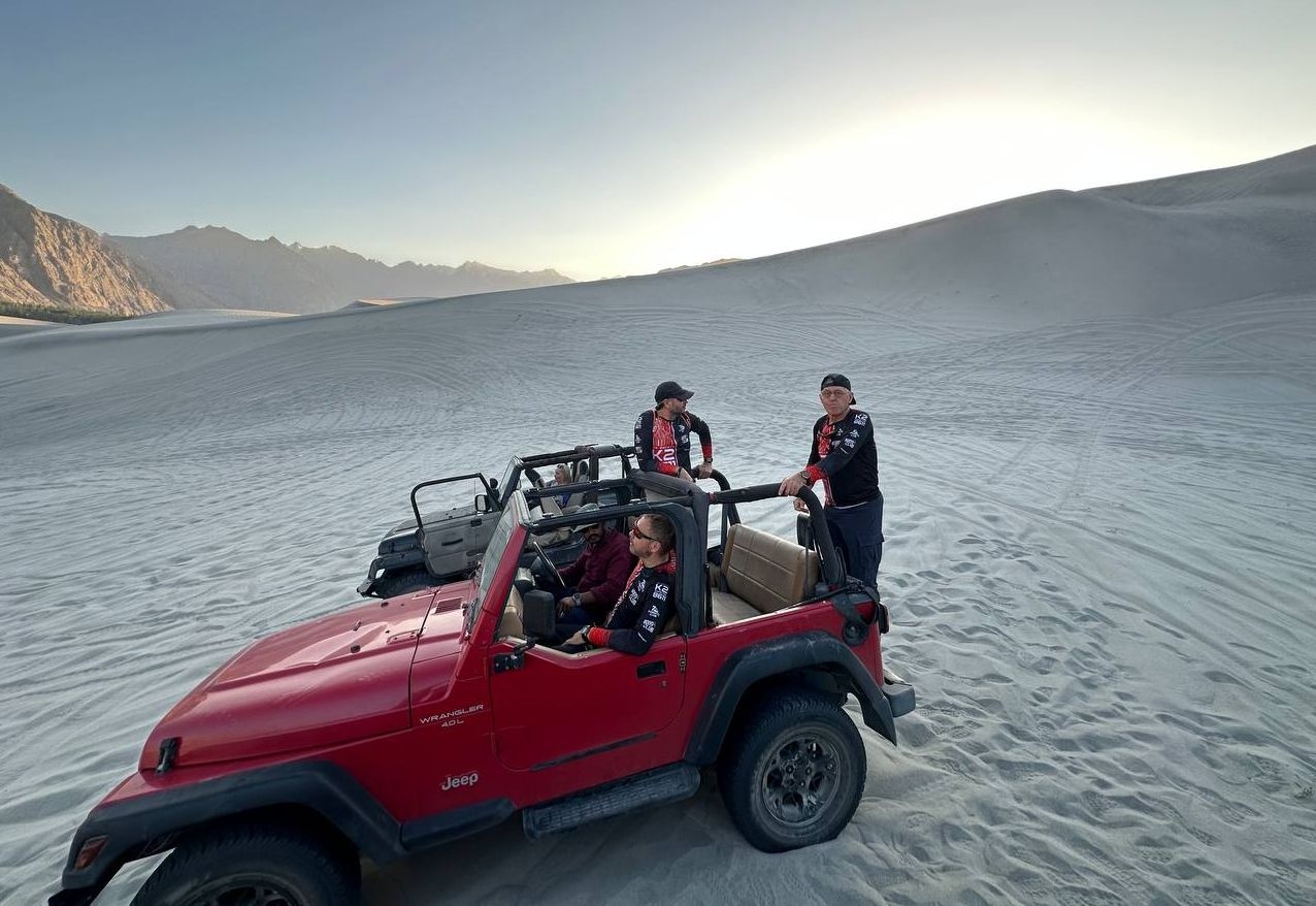Having received a message from Abramov from the trek, we rushed to buy umbrellas and shorts to escape from the incredible heat that is now on the trek. In the evening we went to a very interesting place - a Cold Desert. We rode on the dunes in jeeps, and the bravest even flew on moto-paragliders and hang gliders.