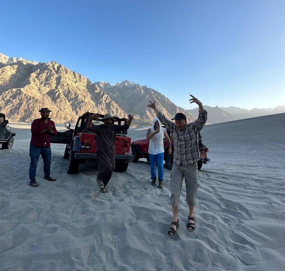 June 22. All salaam from Pakistan from the participants of the expedition to K2 "Height Gene 2" or briefly GenKa2! This morning we went to one of the highest plateaus in the world - the Deosai Plateau. There, at an altitude of 4,300, bears live, stormy rivers flow, snow caps of mountains rise. There we made a couple of acclimatization trips, visited a high-altitude classified military base, tasted pink Baltistan tea. In the evening we returned to our hotel, where we had a hearty dinner, a barbecue with a bonfire and music.