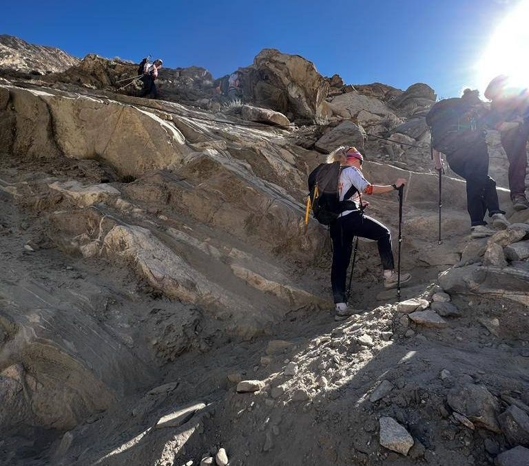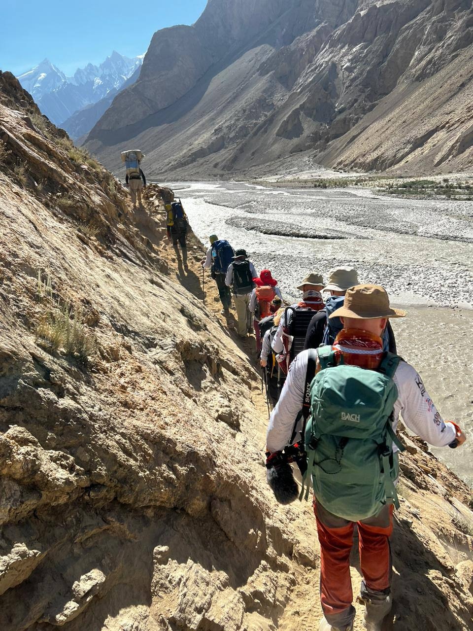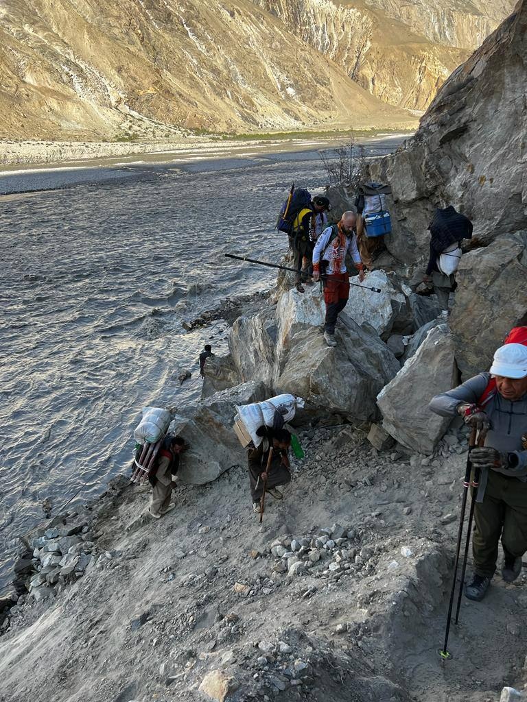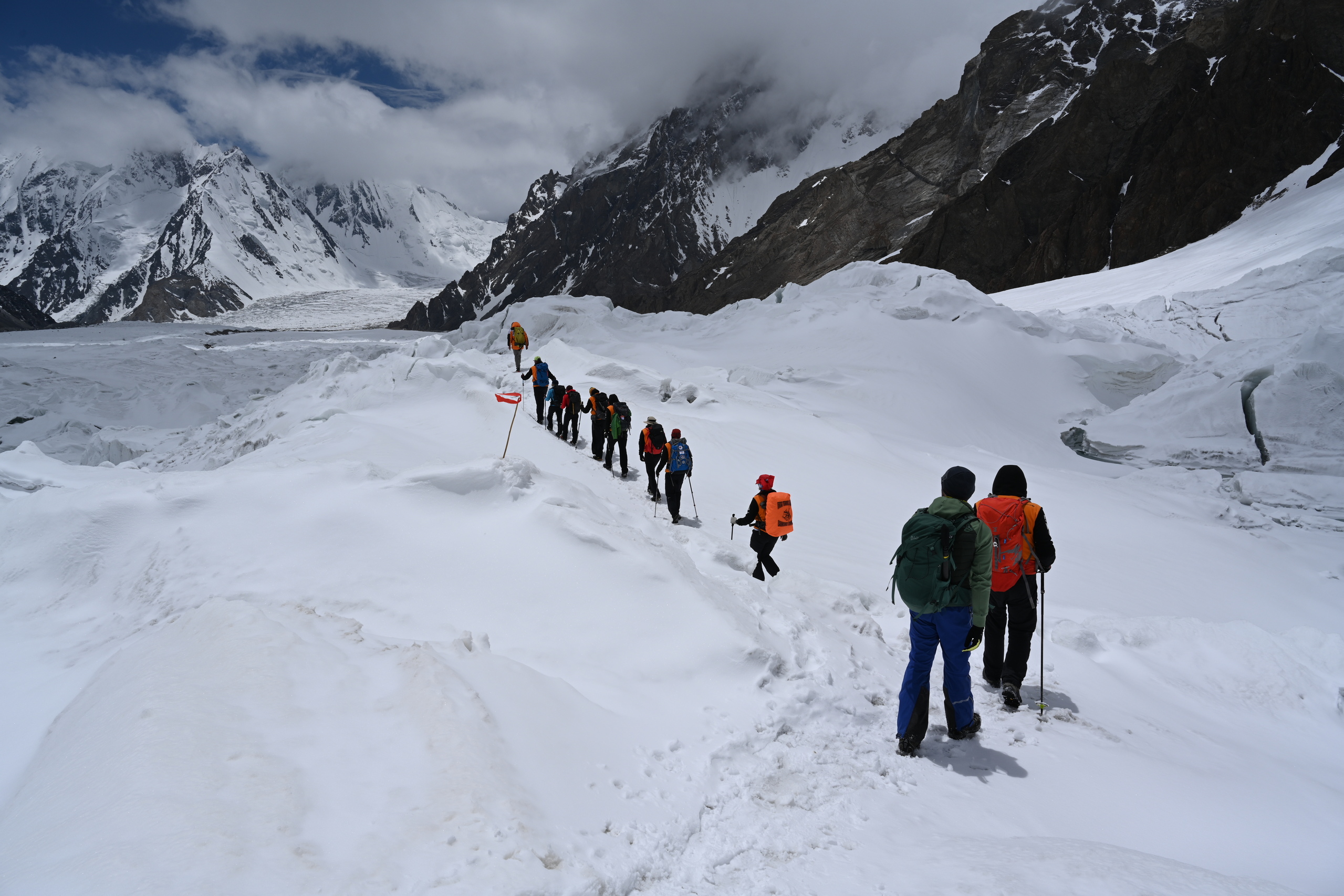 Yesterday was a great hot day. We had breakfast at 5 in the morning and at 6 in the morning we were already on our way. After 9 am it gets very hot, so we go with umbrellas from the sun. The Karakoram Mountains are something incredible. The views are striking in their beauty. In parallel with us there are 4 more groups. Many familiar climbers. They say that there is an unusual amount of snow this year, and the season is just beginning.