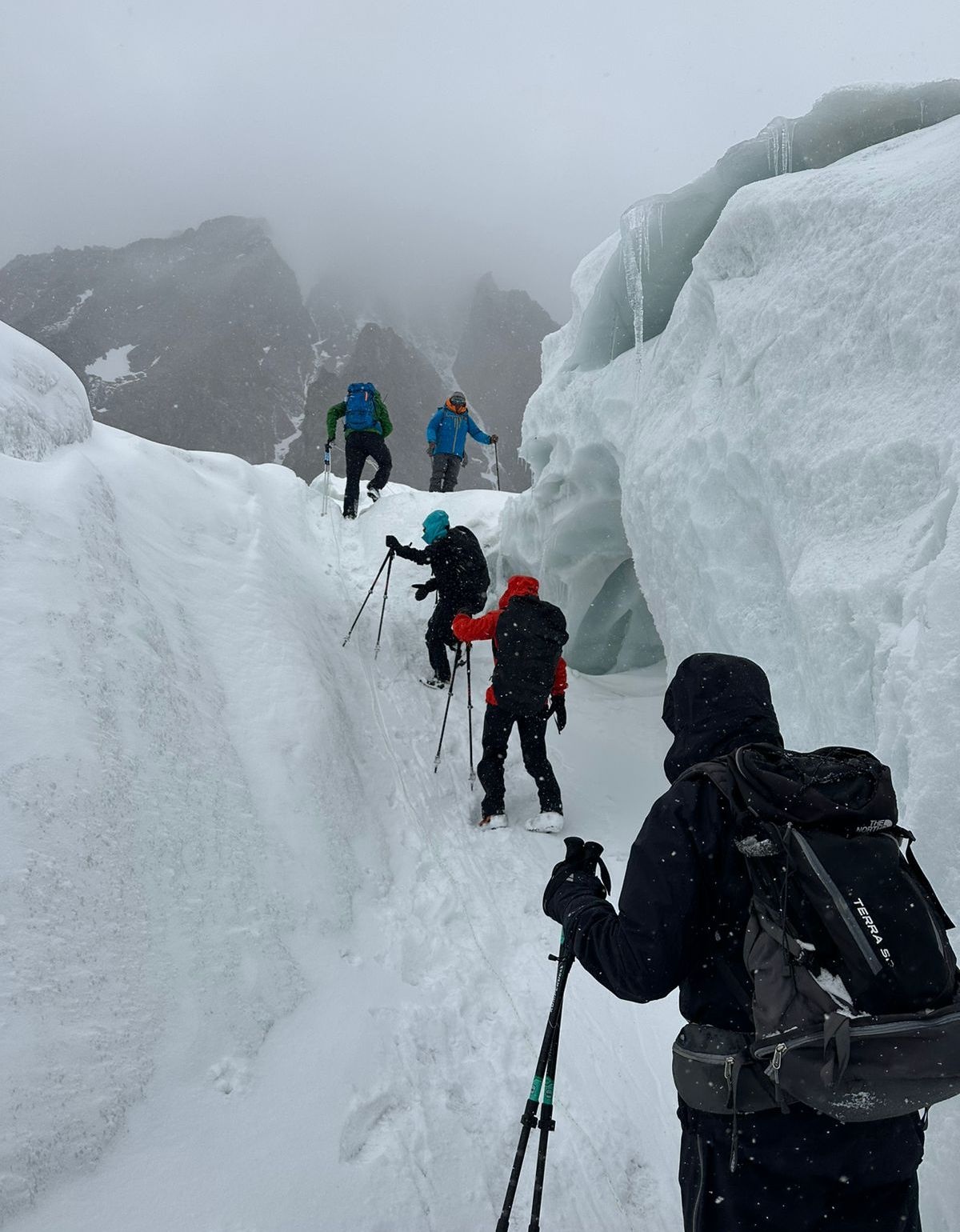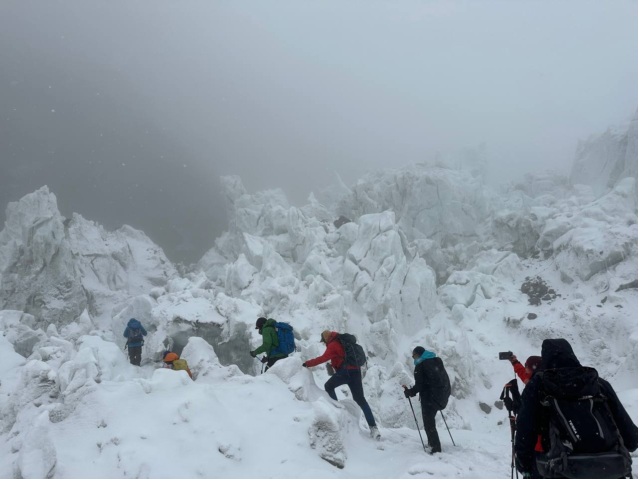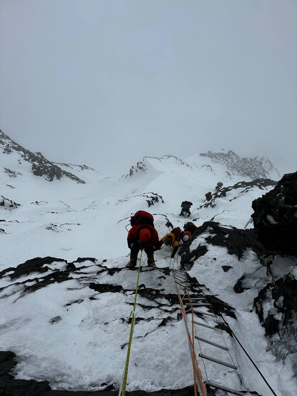 At six in the morning, we got out of the tents, put on the crampons and harness, then and climbed up in the hope for the best.