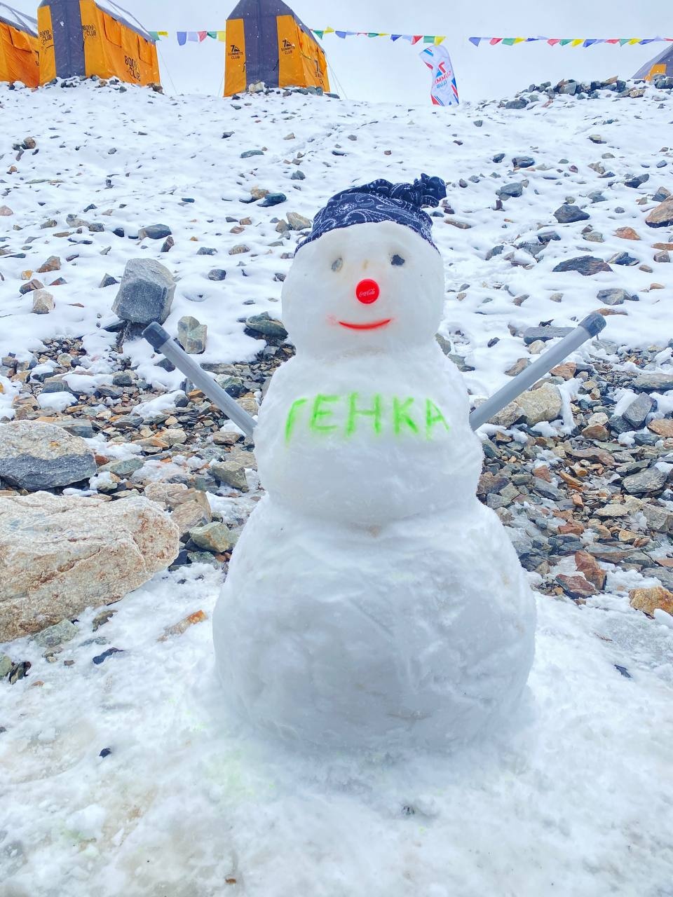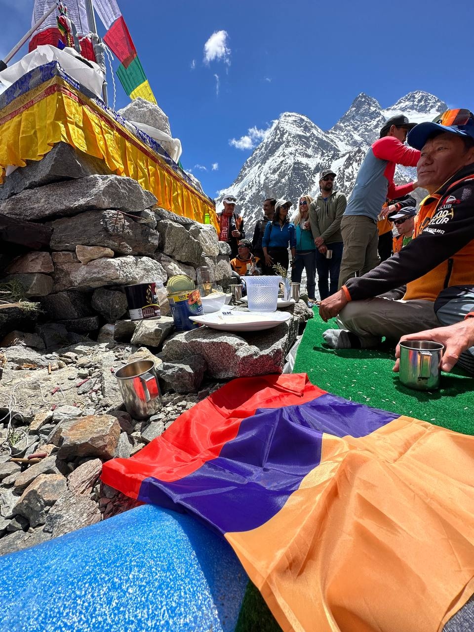 By lunchtime we came to the place of BC. We put on a team uniform, raised the flag and solemnly entered the camp. Here we were joyfully greeted by a team of our Sherpas led by Alex Abramov.We comfortably accommodated in single tents with beds (!). Had lunch. Now we rest. Snowfall is forecast for the next 2-3 days. We will rest and acclimatize at the Base Camp.