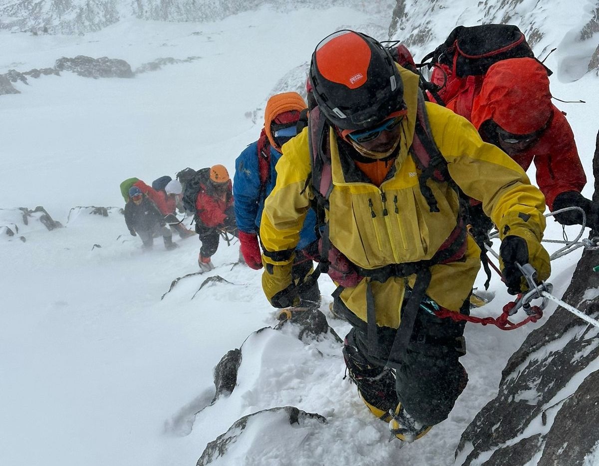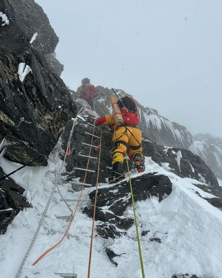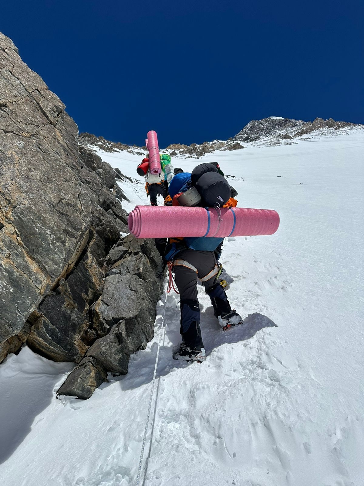 Today, the third group of our expedition went up from Camp-2 to Camp-3. In the photo, overcoming the Black Pyramid