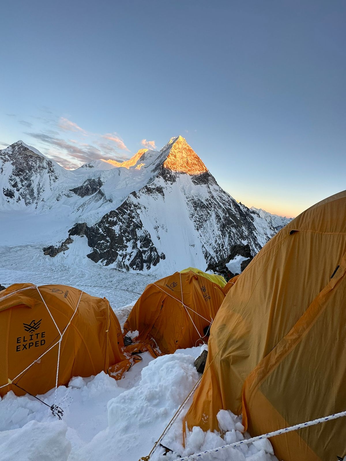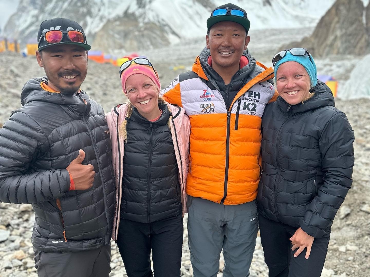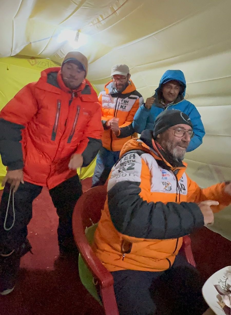 The summiters of K2 of the first wave Ekaterina Safronova and Maria Oglobleva safely descended to the Camp-2.  Dmitry Moskalev and Bartolomey Pachosky stayed overnight at Camp 3. Everyone is resting. Tomorrow they plan to go down to the Base Camp.
