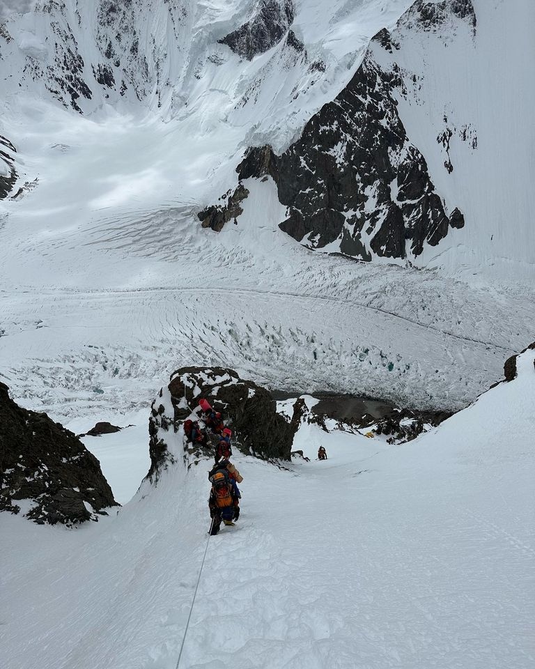 At 18:00, the first team left the third camp to storm the summit. Right in front of them is a team of Sherpas hanging ropes. There is a lot of snow. The Sherpas failed to set up Camp 4 due to bad weather. The season on K2 is very difficult. Weekly snowfalls. Short windows of good weather. Now the weather is average lousy. It's snowing at Camp 3. Although all the surrounding peaks are open. We pray for the friends. Good luck today!