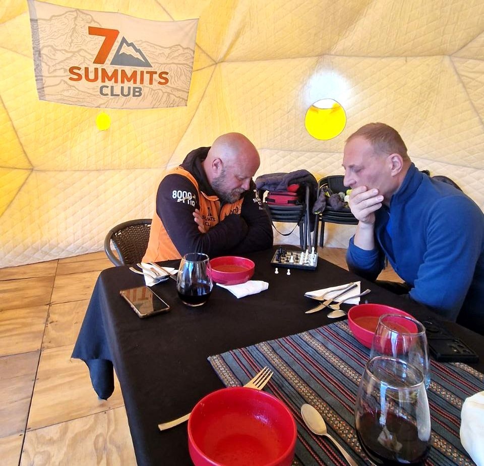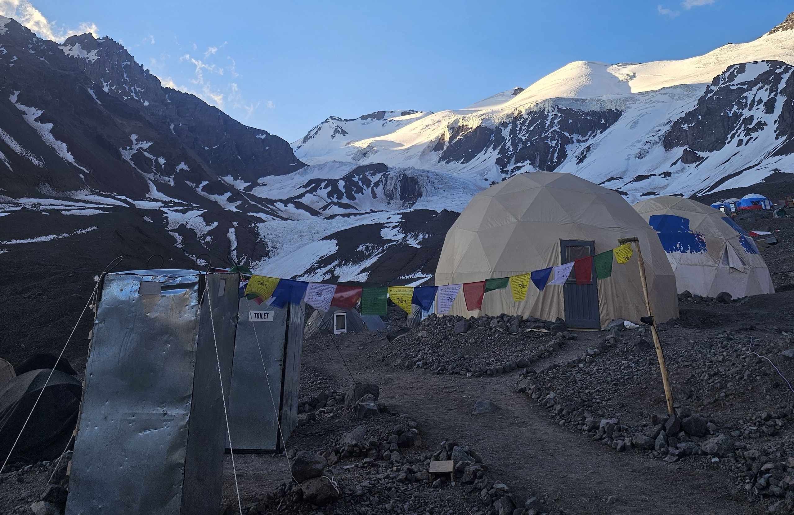<![CDATA[ The acclimatization process of the 7 Summits Club group "Chiki and Piki" continues in the area of ​​the Plaza de Mulas base camp ]]> http://7summitsclub.com/news/all/item_18148/ Hola! We, the "Chiki and Piki" group, are gradually settling in at 4300, at Plaza de Mulas. In terms of getting to know the surroundings, we visited an old hotel, as well as the nearest bar. Next, we are going to visit Plaza Canada and climb above the 5000 meter mark. And also, the famous high-altitude art gallery. Group guides Andrey Berezin and Viktor Volodin.