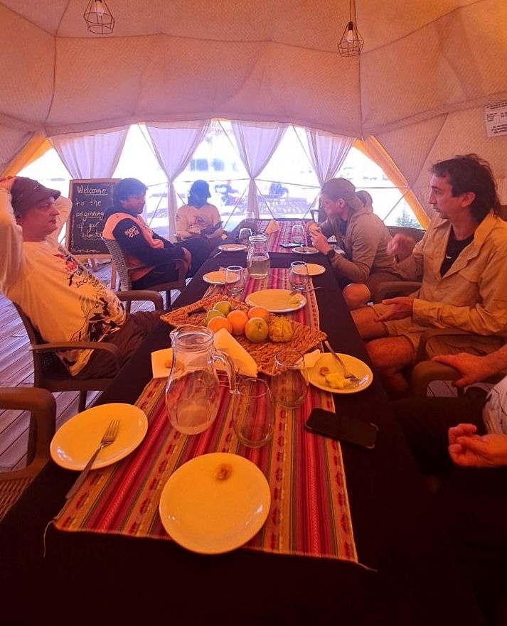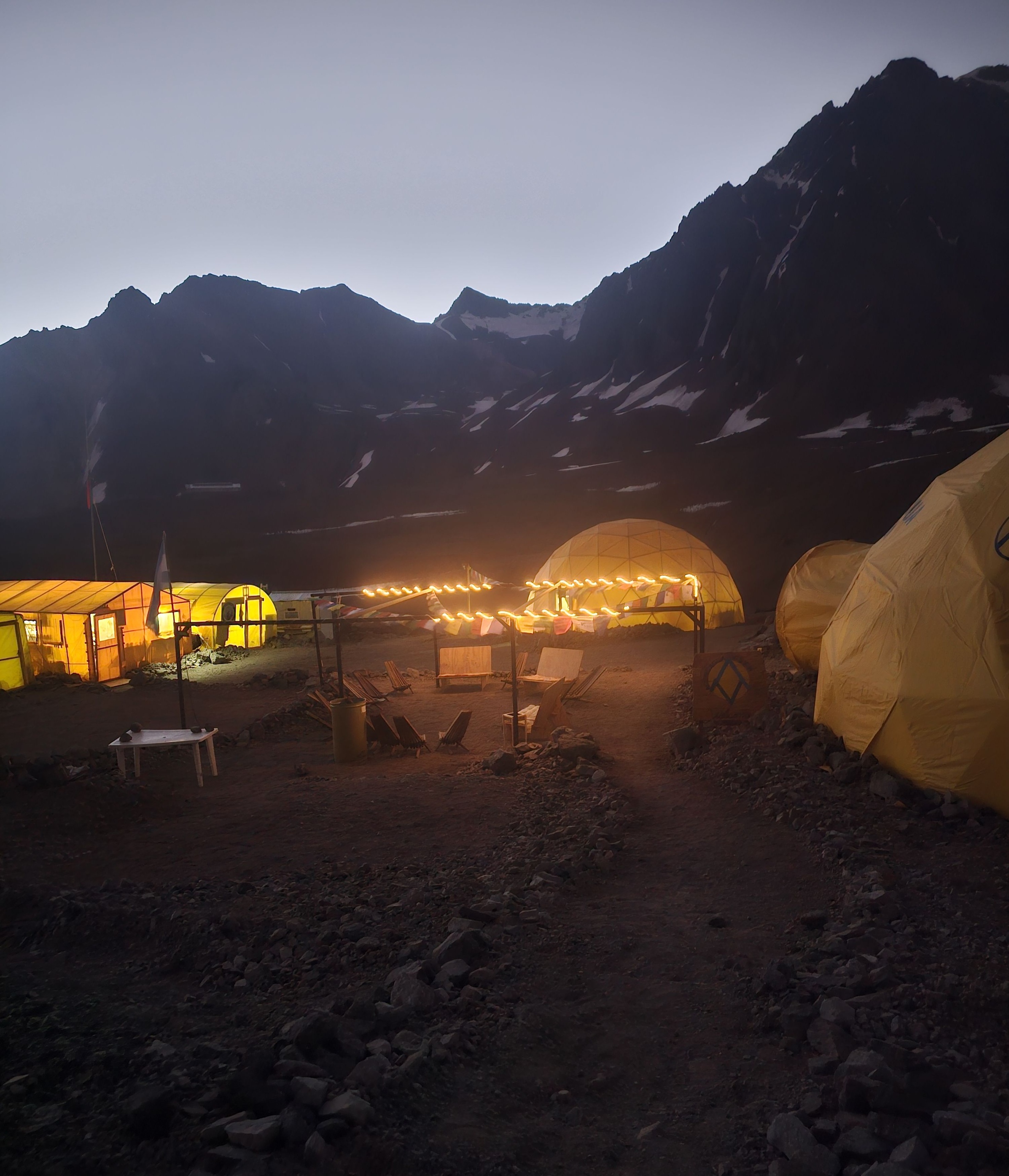 Greetings from the slopes of Aconcagua! We congratulate everyone on the new 2025. Our super team "Dohodyagi" spent the night in the Nido de Condores camp as part of acclimatization program. And it was an unforgettable New Year's Eve at an altitude of 5500 meters! The next day, our group descended to the base camp, now we have rest and assault days. All participants are in good shape.