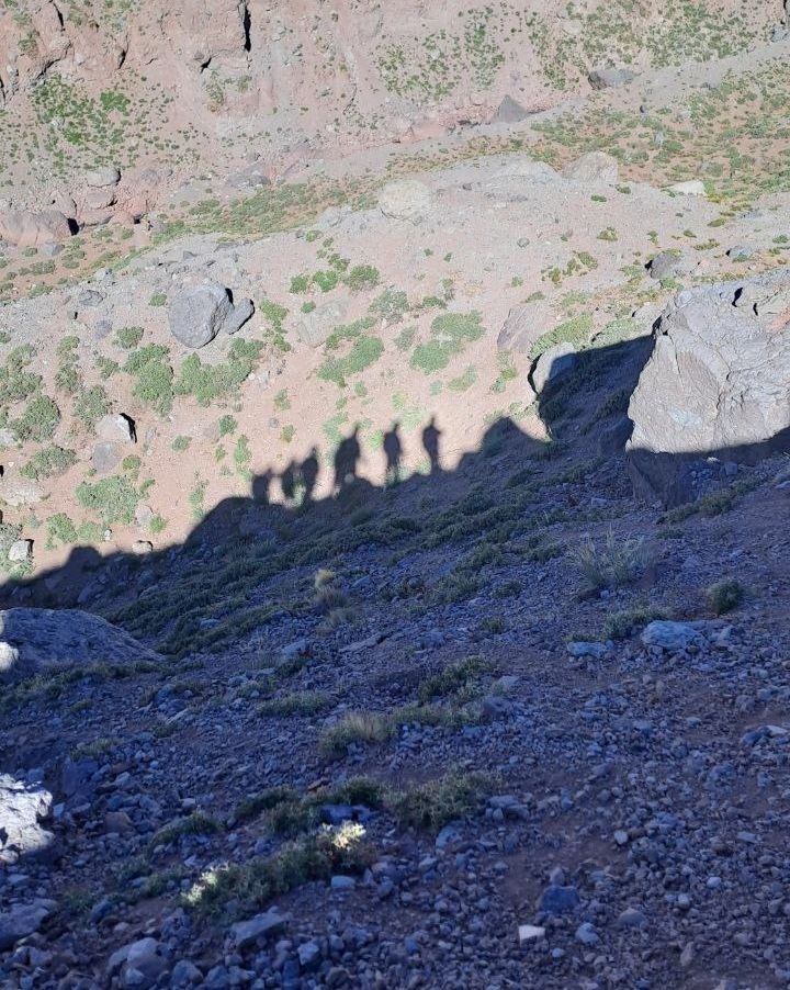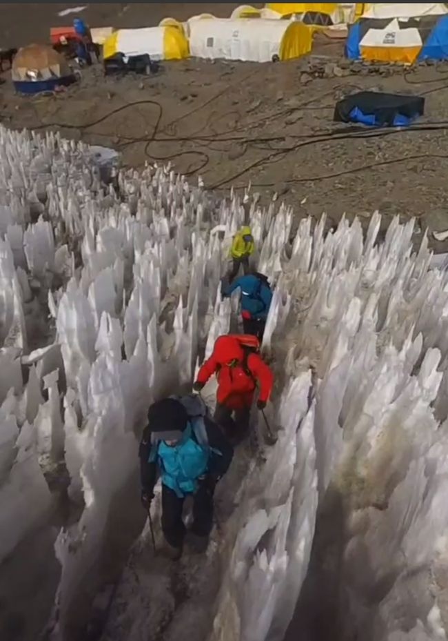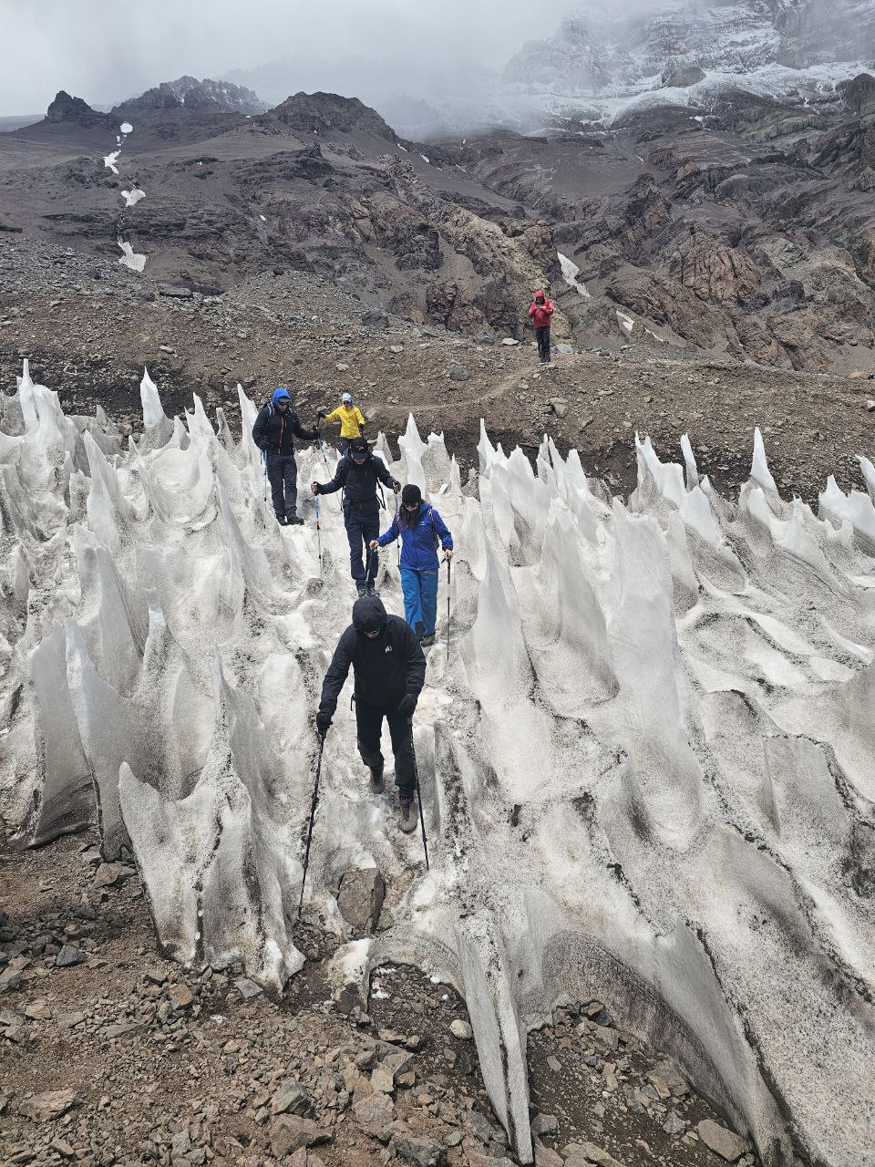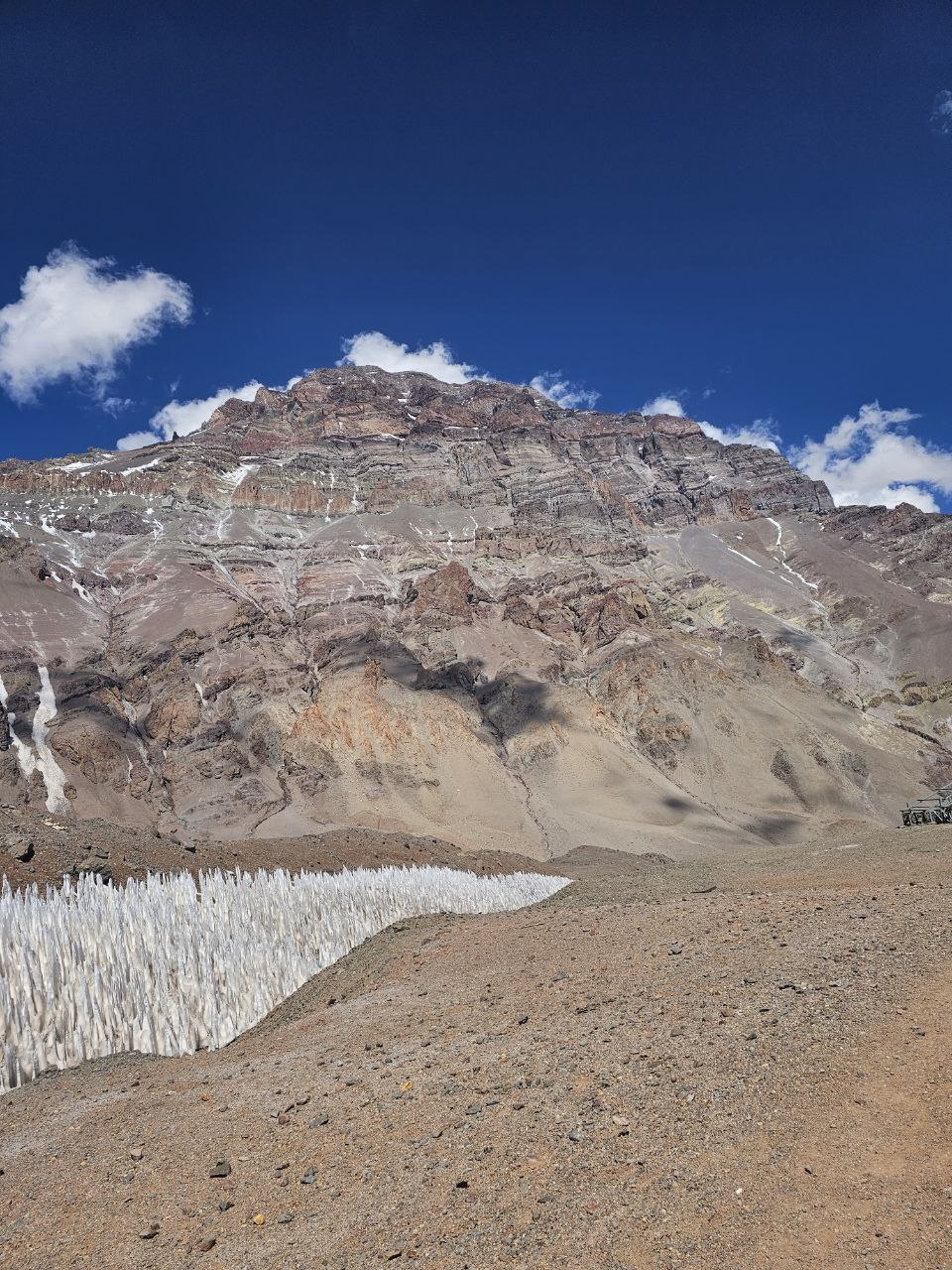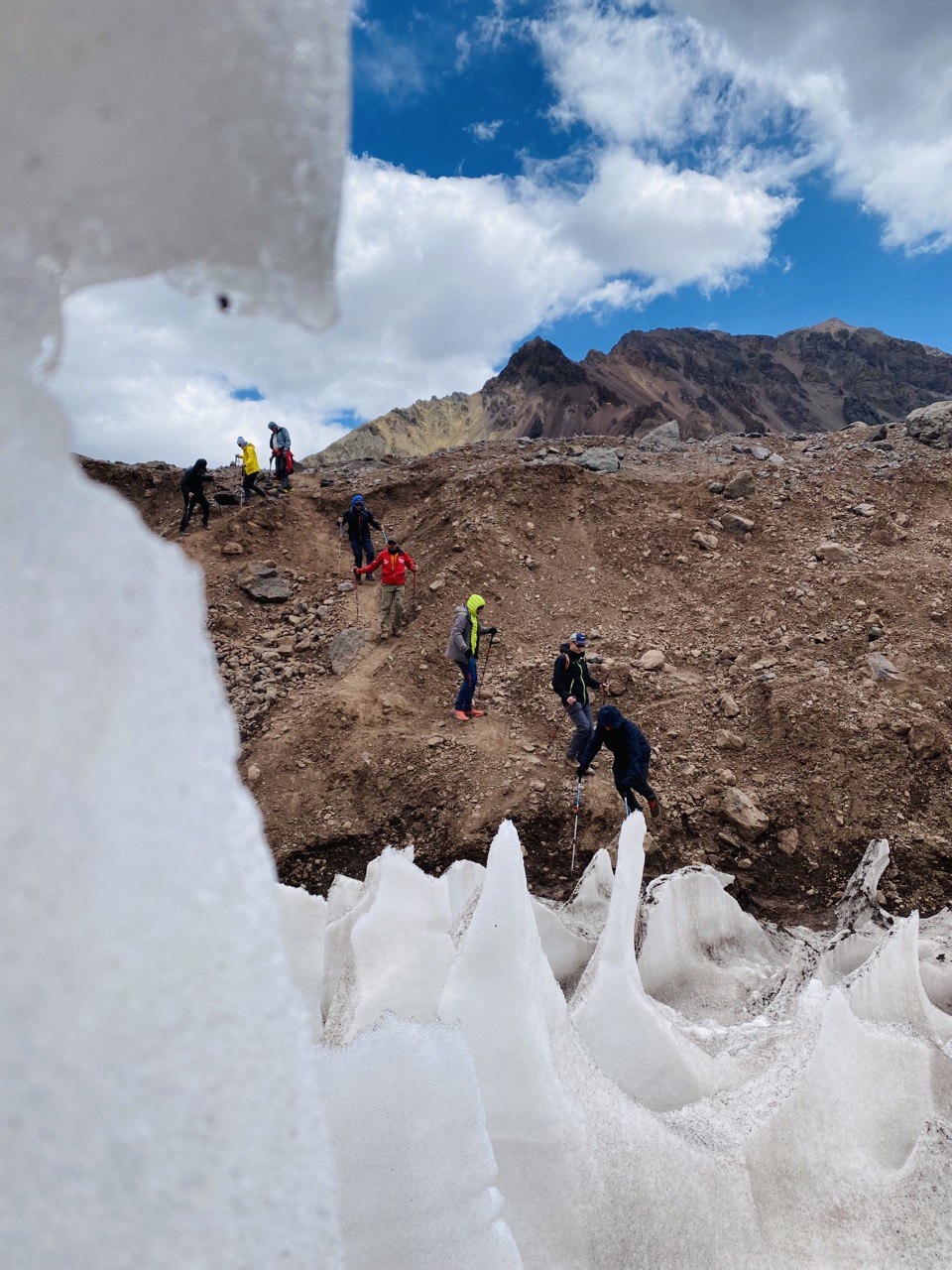 Hola! The "Los Hombres" group today had a rest day after a long trek from Confluencia to Plaza de Mulas. After lunch, we decided to go on an excursion to an abandoned shelter. On the way, we had to cross calgasporas (aka penitentes). It turned out to be a quite difficult task. But we managed!
