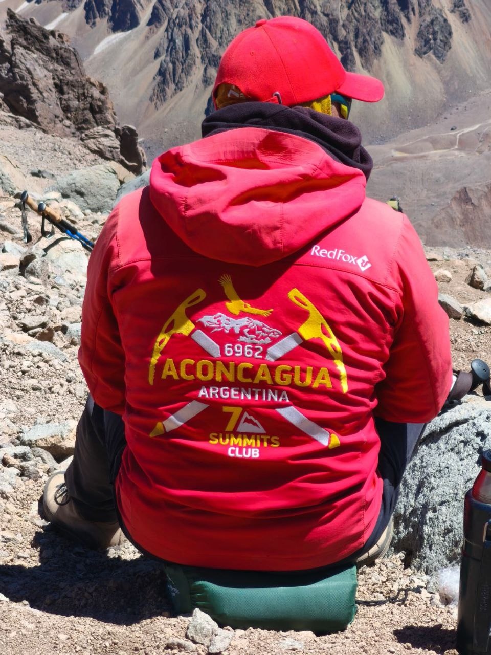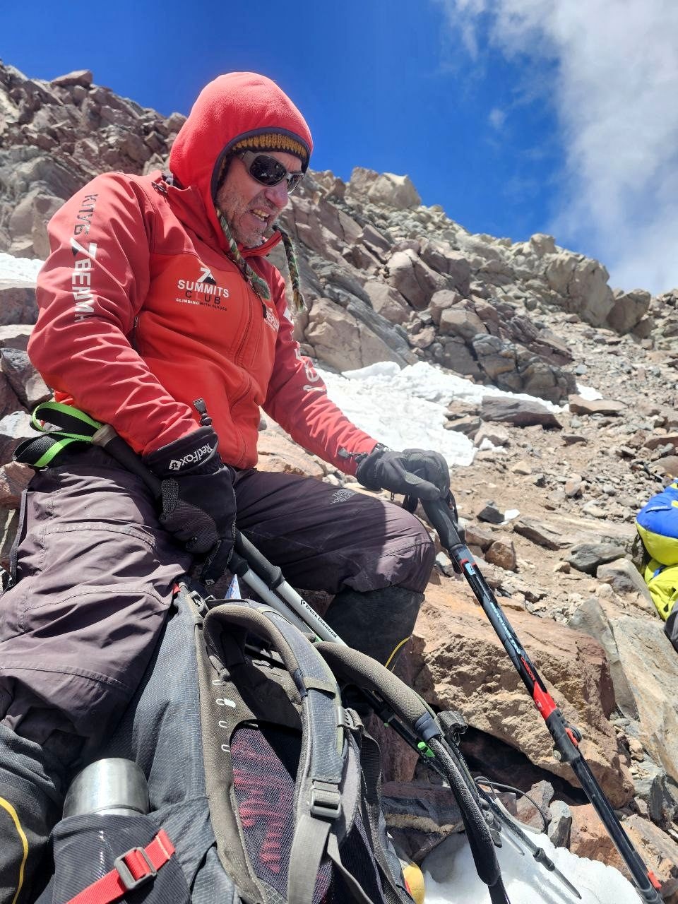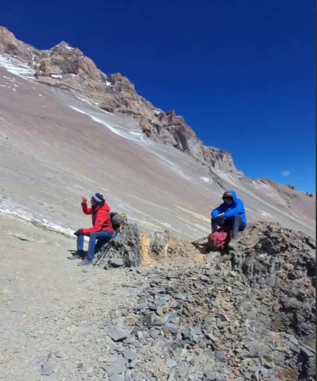 Greetings from the slopes of Aconcagua! Today our super-group "Dohodyagi" climbed to the high-altitude camp Nido de Condores (5500 m). We walked at a good pace and in a great mood. Now it's time to rest and tomorrow we'll go to the Berlin assault camp (5930 m).